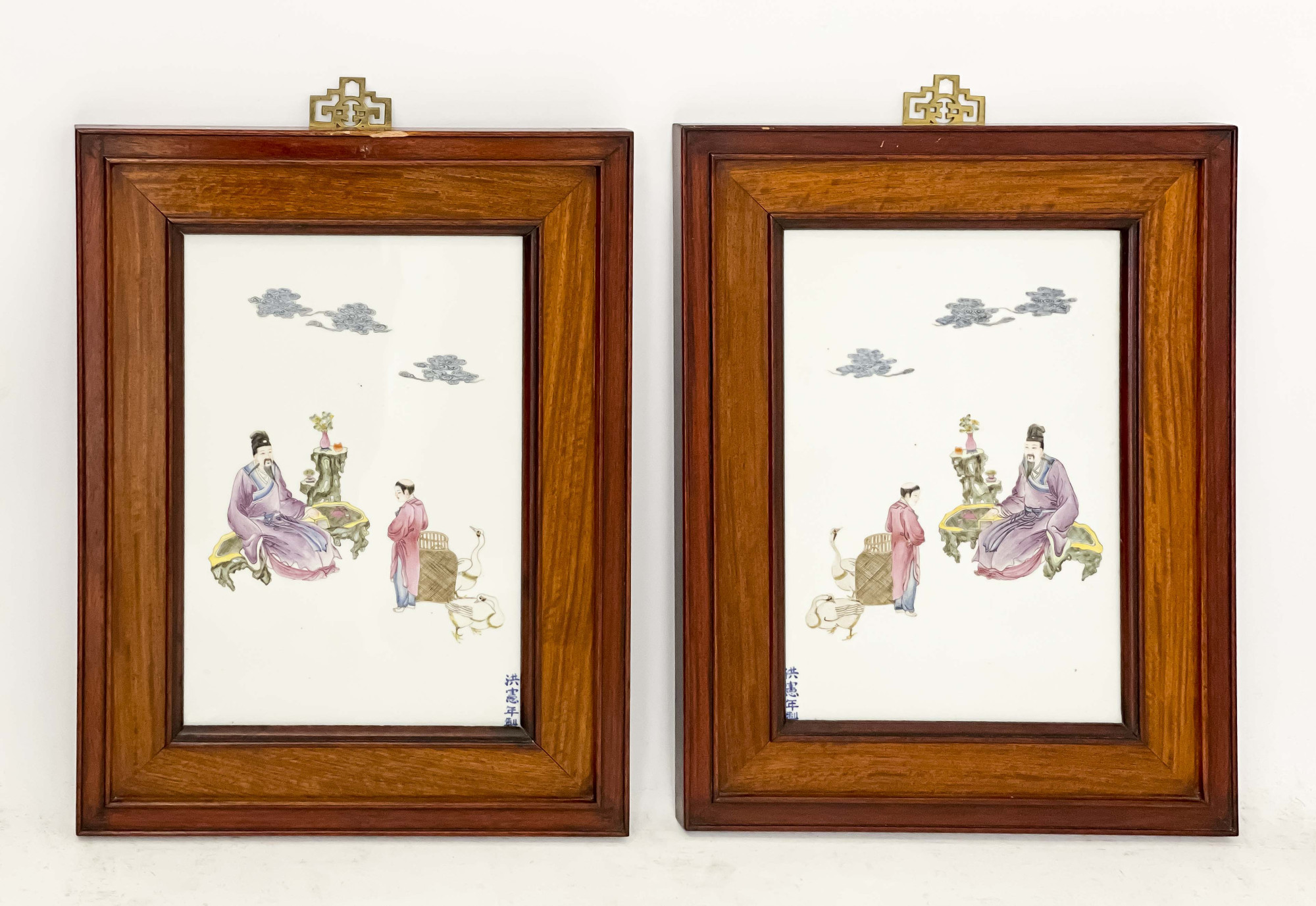 Pair of Chinese Porcelain Enamel Decorated Plaques (with Hongxian Marks, and possibly of the period)
