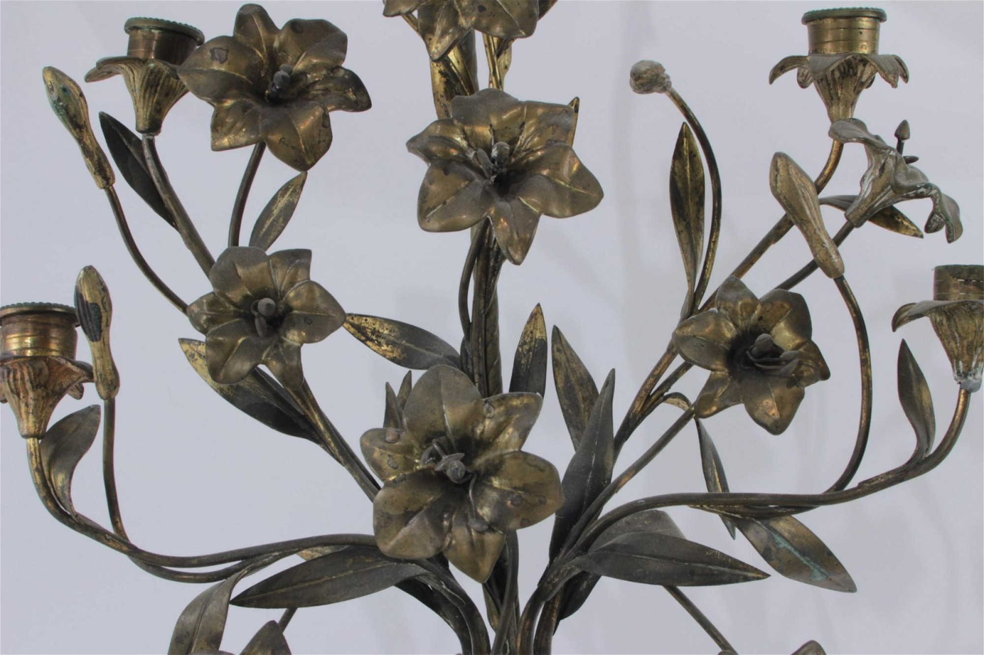 A pair of Louis XVI style parcel gilt lamps of floral motif.
