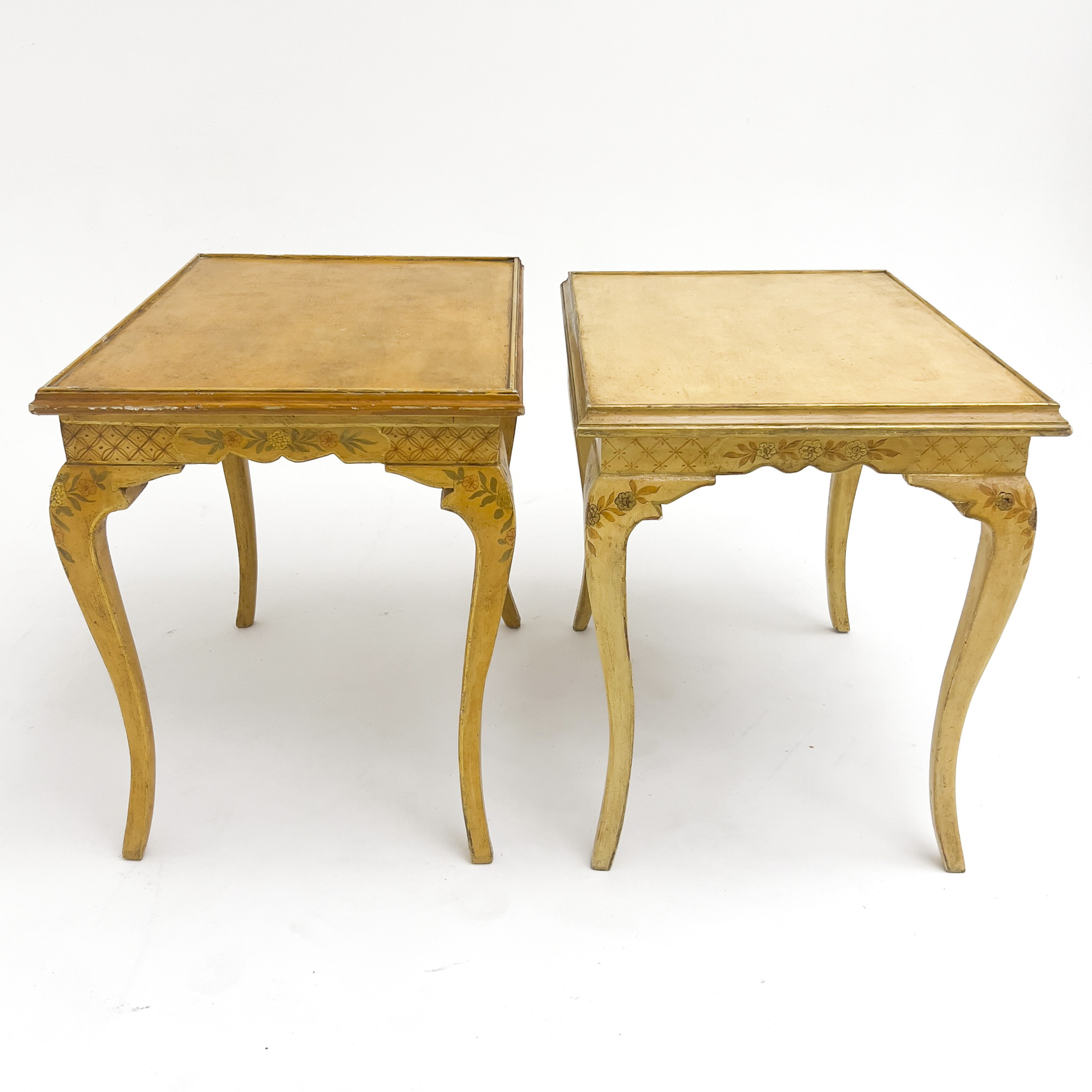 Pair of Ochre-Painted Chinoiserie Tray Top Side Tables