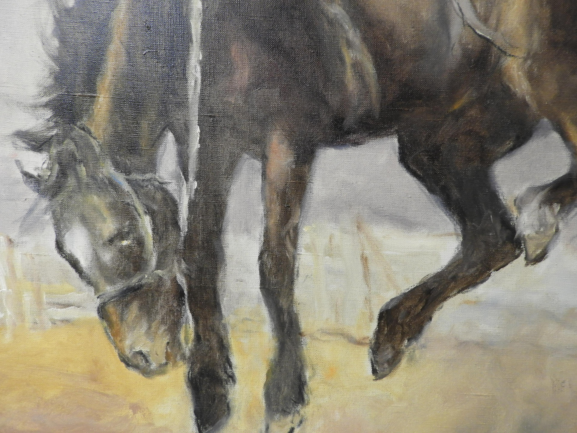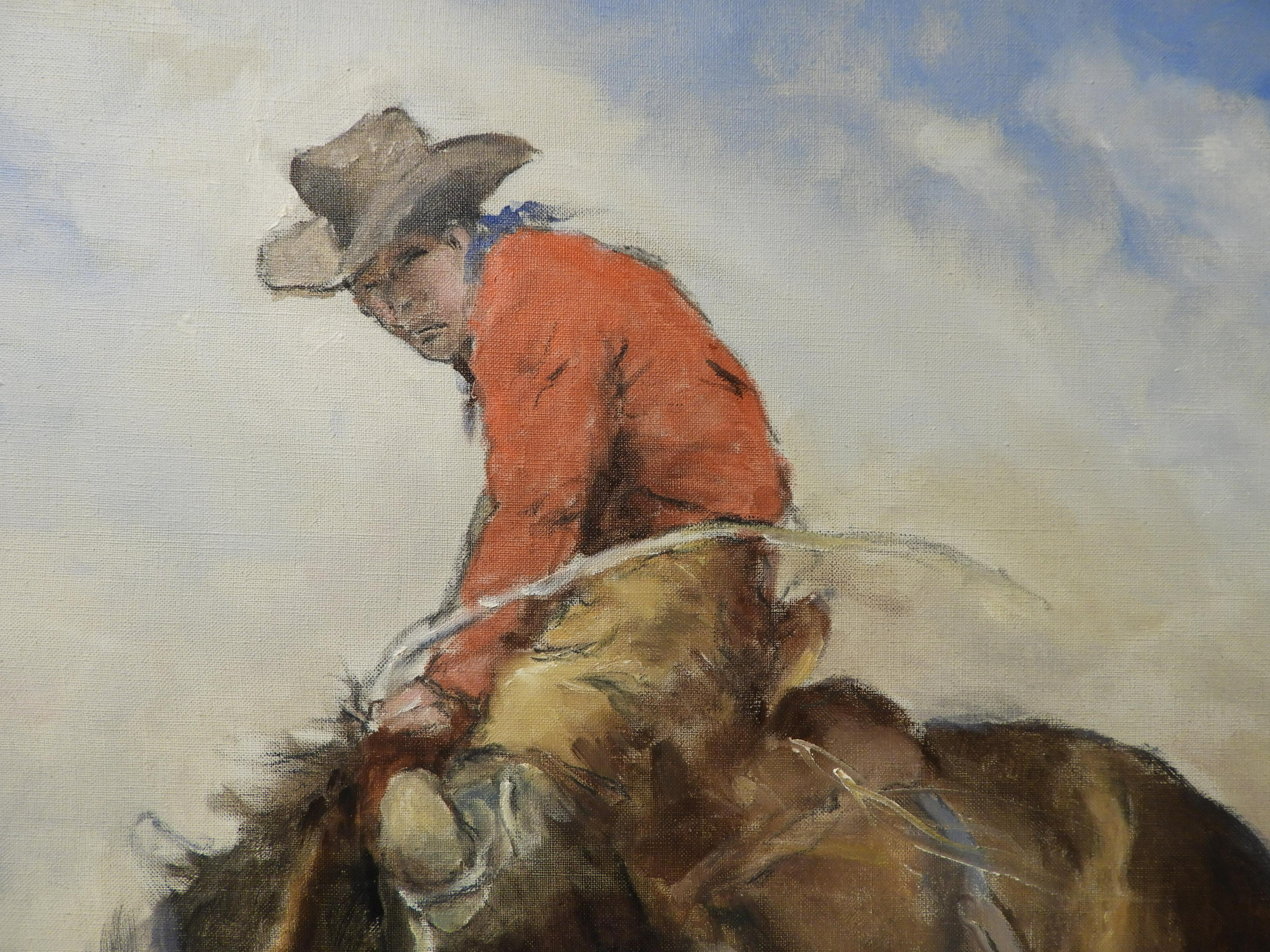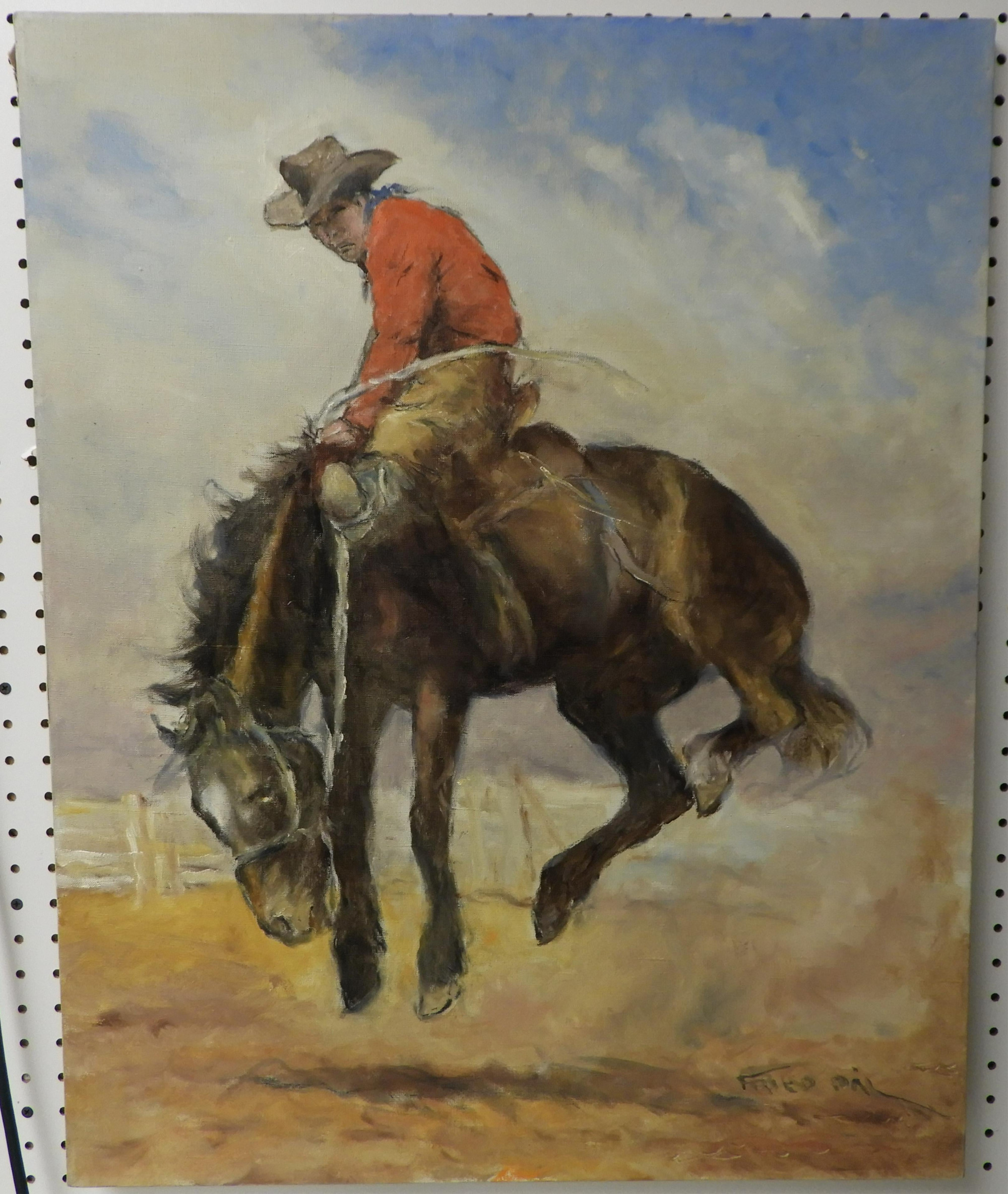 Pal Fried (Hungarian American, 1893 - 1976) Cowboy on bronco, oil on canvas. Signed lower right. Property from a fourth generation gallery, NYC Dimensions: 30 x 24" unframed (HEAR108)(EL)