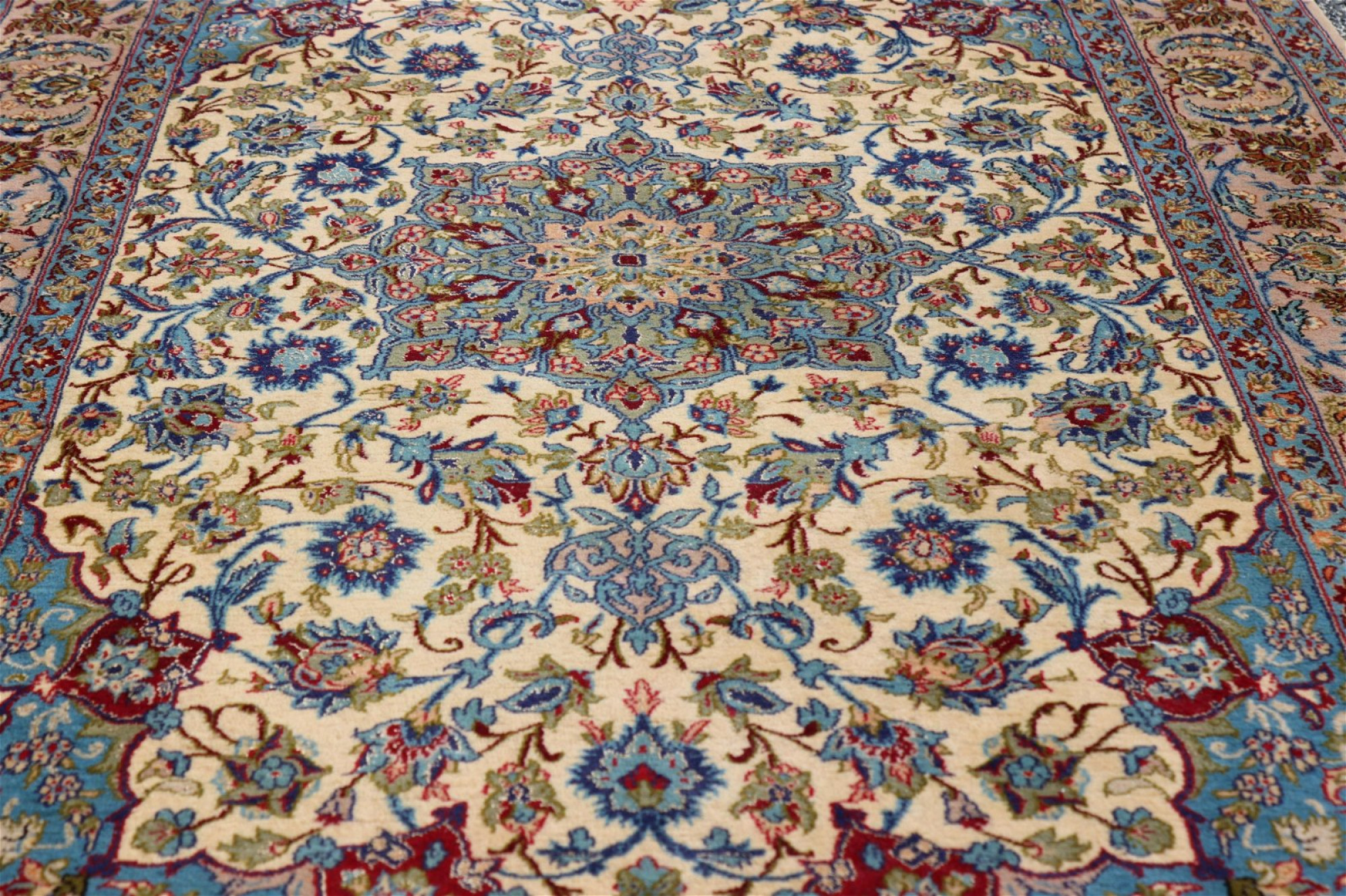 Persian Style Wool Rug, center medallion overall coloration of pale blues tan,red and mauve
