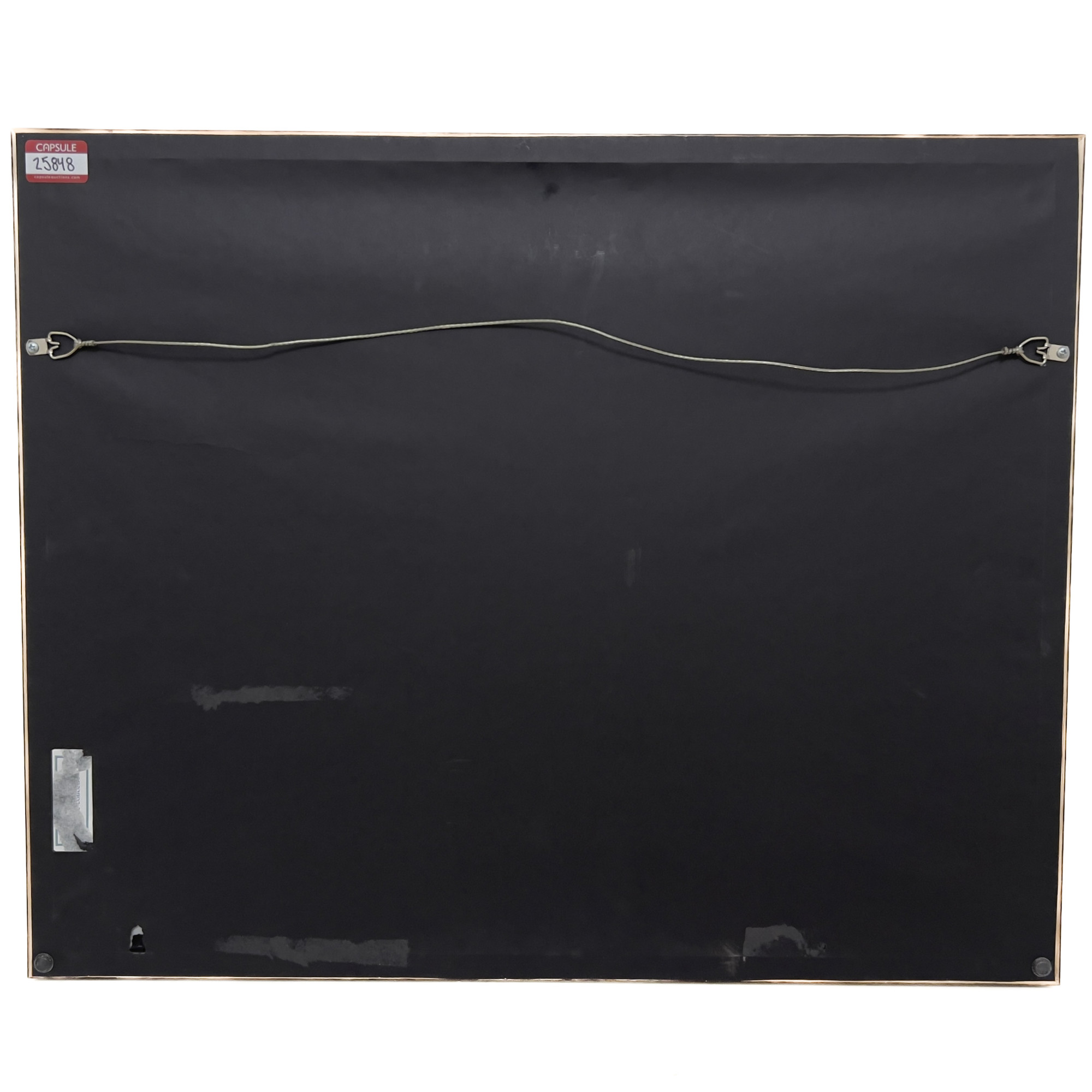 Art has not been examined out of the frame unless otherwise stated. Frames, lampshades, or items described as “supplementary” are not considered integral to the value of the lot and are excluded from condition assessments. This includes any mat, mounting, glazing, hanging apparatus, case, box, or stand. Timepiece movements, lighting elements and items with mechanical or electrical components have not been thoroughly tested and are not covered under warranty by Capsule.