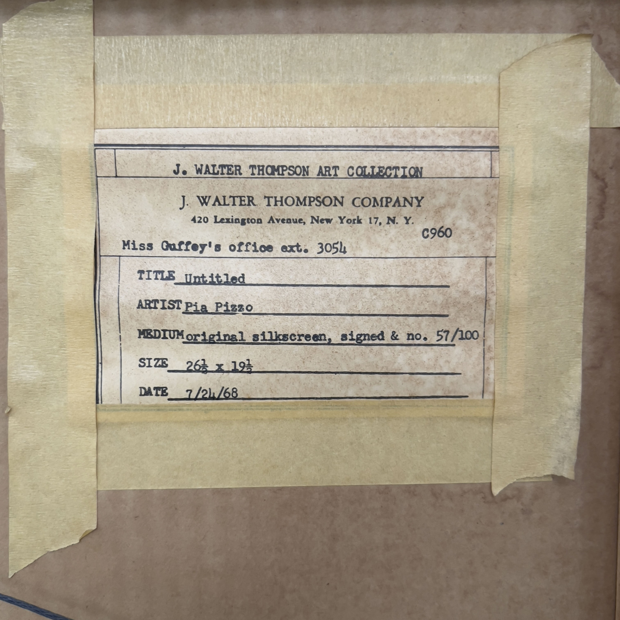 J Walter Thompson Collection label verso