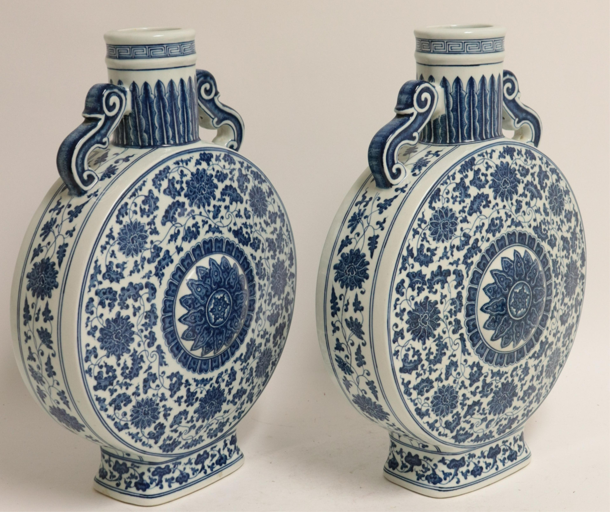 Pr Chinese Blue/White Porcelain Moon Flask Vases