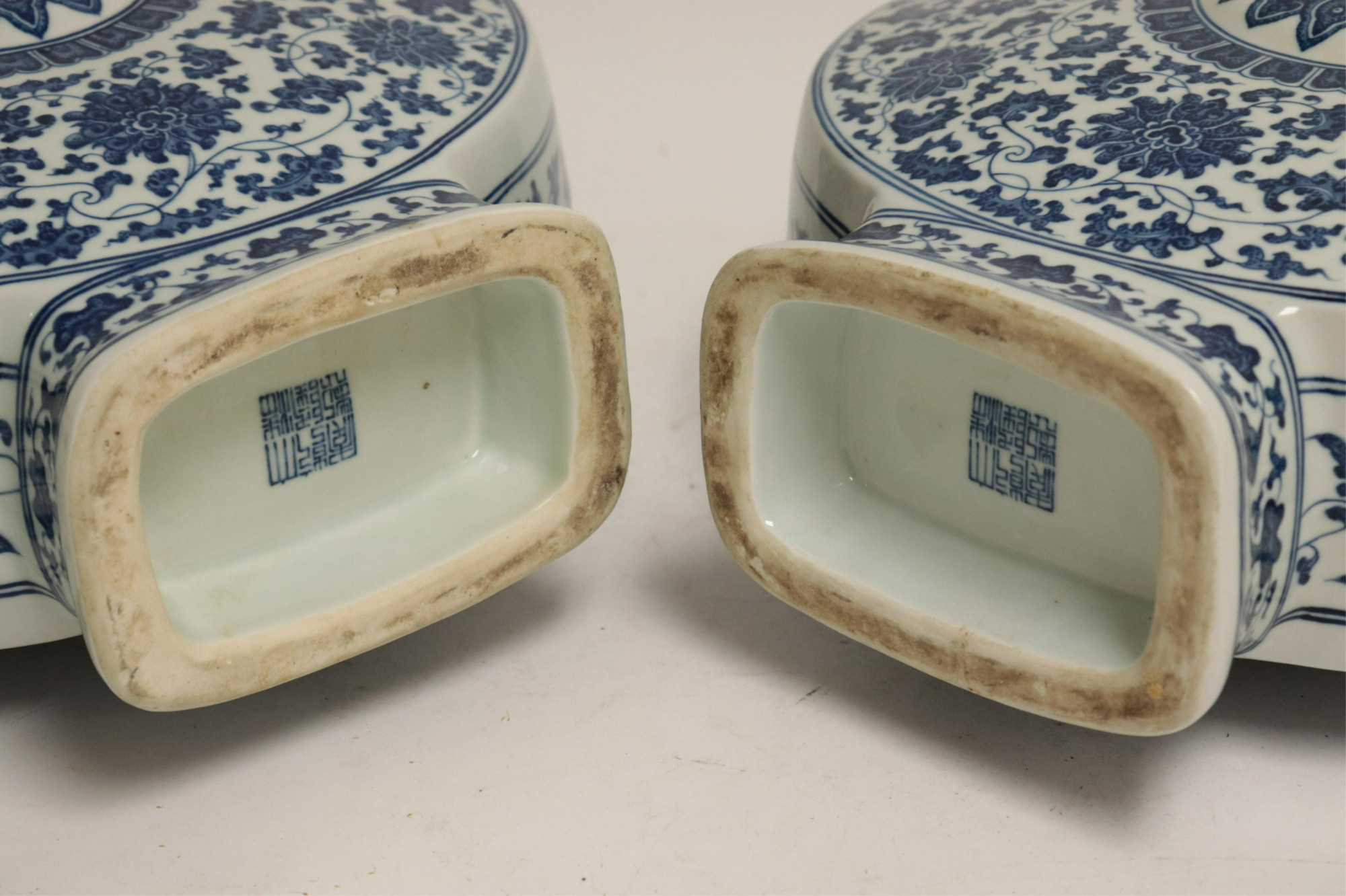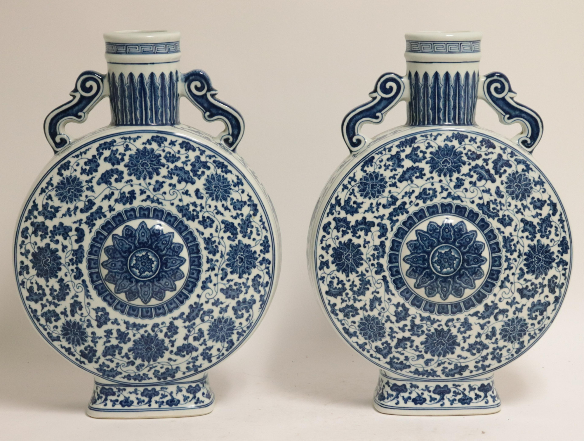 Pair Chinese Blue & White Porcelain Moon Flask Vases, bearing Qianlong marks (2 pc.) (BIRD336/2)(MS)