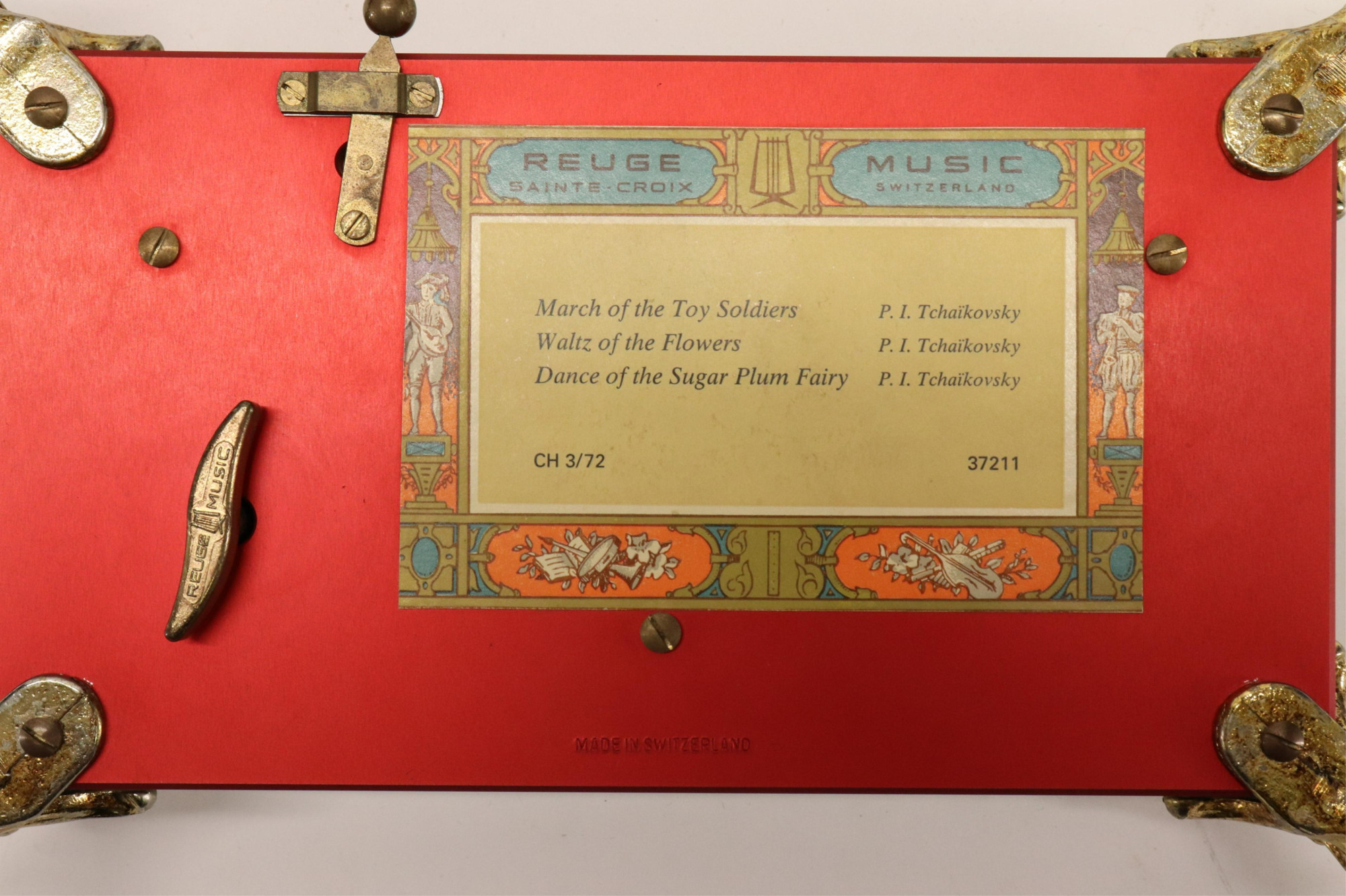 Reuge Saint Criox Switzerland, no.24377, plays 3 Tchaikovsky works, label to underside; Vintage Sankyo Japan, plays Chopin