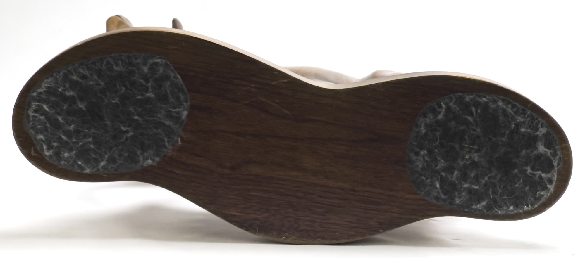 Bronze sculpture in variegated stone-like colors, on a shaped wood base