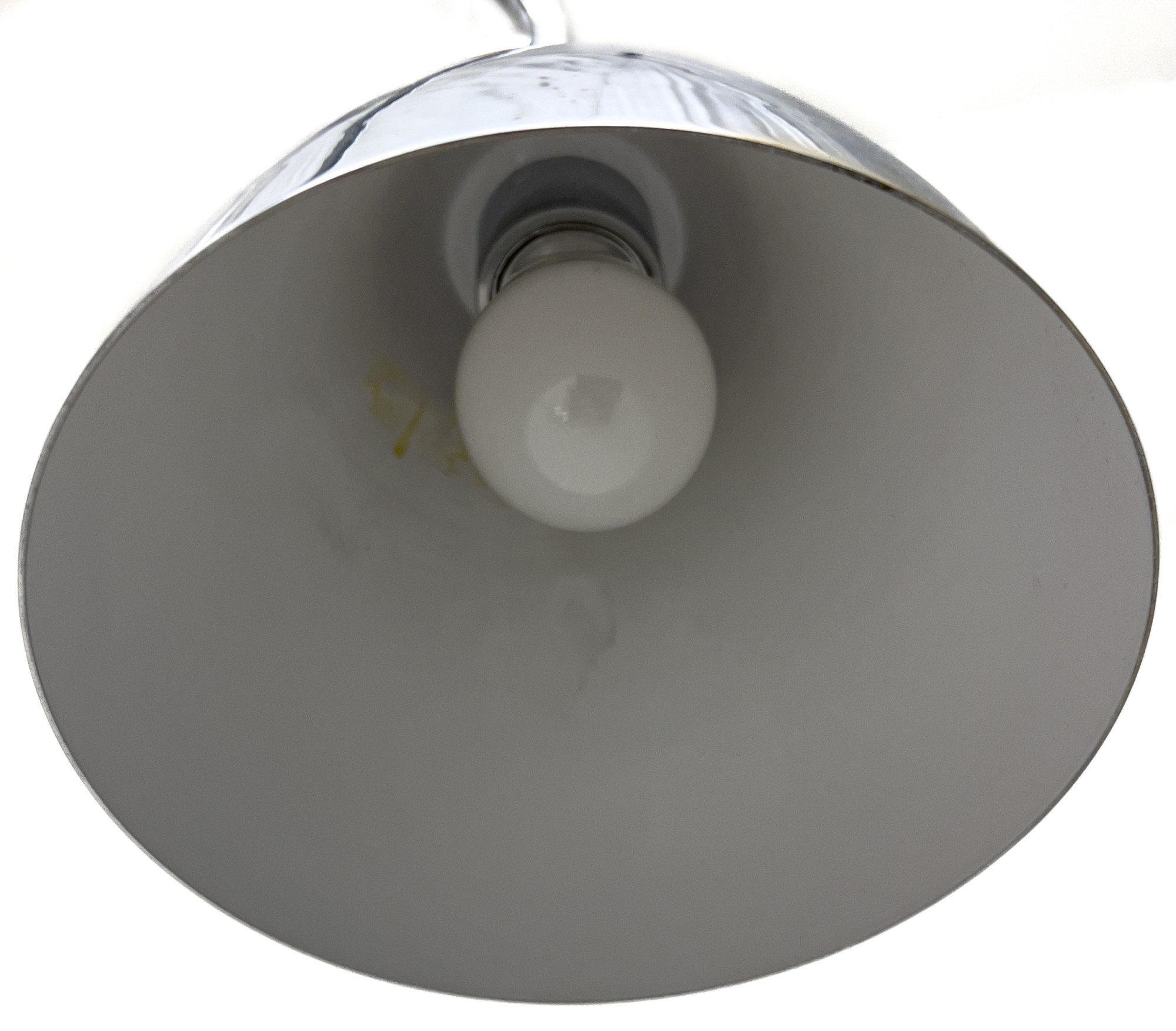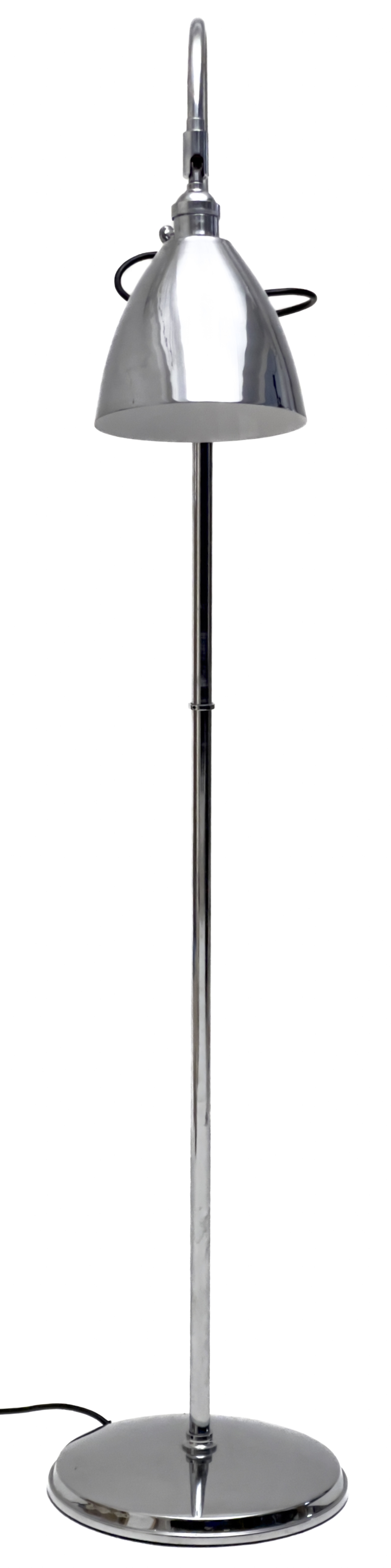 Designed in 1930 by Robert Dudley Best, manufactured by GUBI, model BL-3-US, chrome finish, with pivoting arm and shade, adjustable height