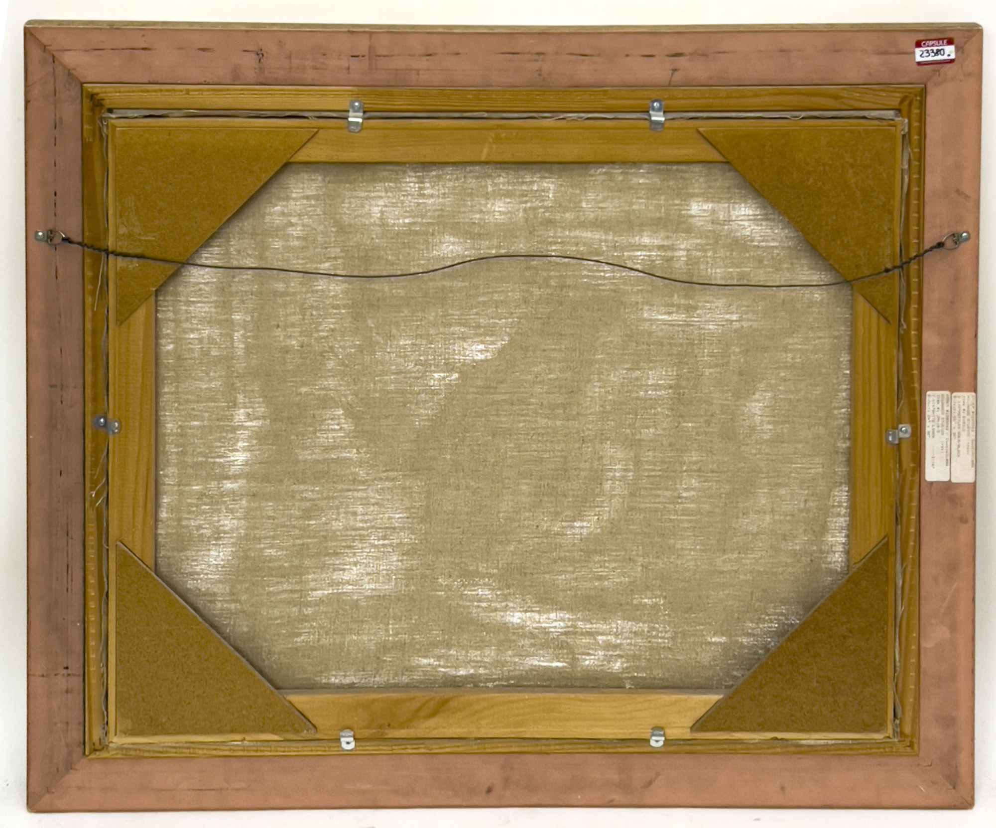 Art has not been examined out of the frame unless otherwise stated. Frames, lampshades, or items described as “supplementary” are not considered integral to the value of the lot and are excluded from condition assessments. This includes any mat, mounting, glazing, hanging apparatus, case, box, or stand. Timepiece movements, lighting elements and items with mechanical or electrical components have not been thoroughly tested and are not covered under warranty by Capsule.