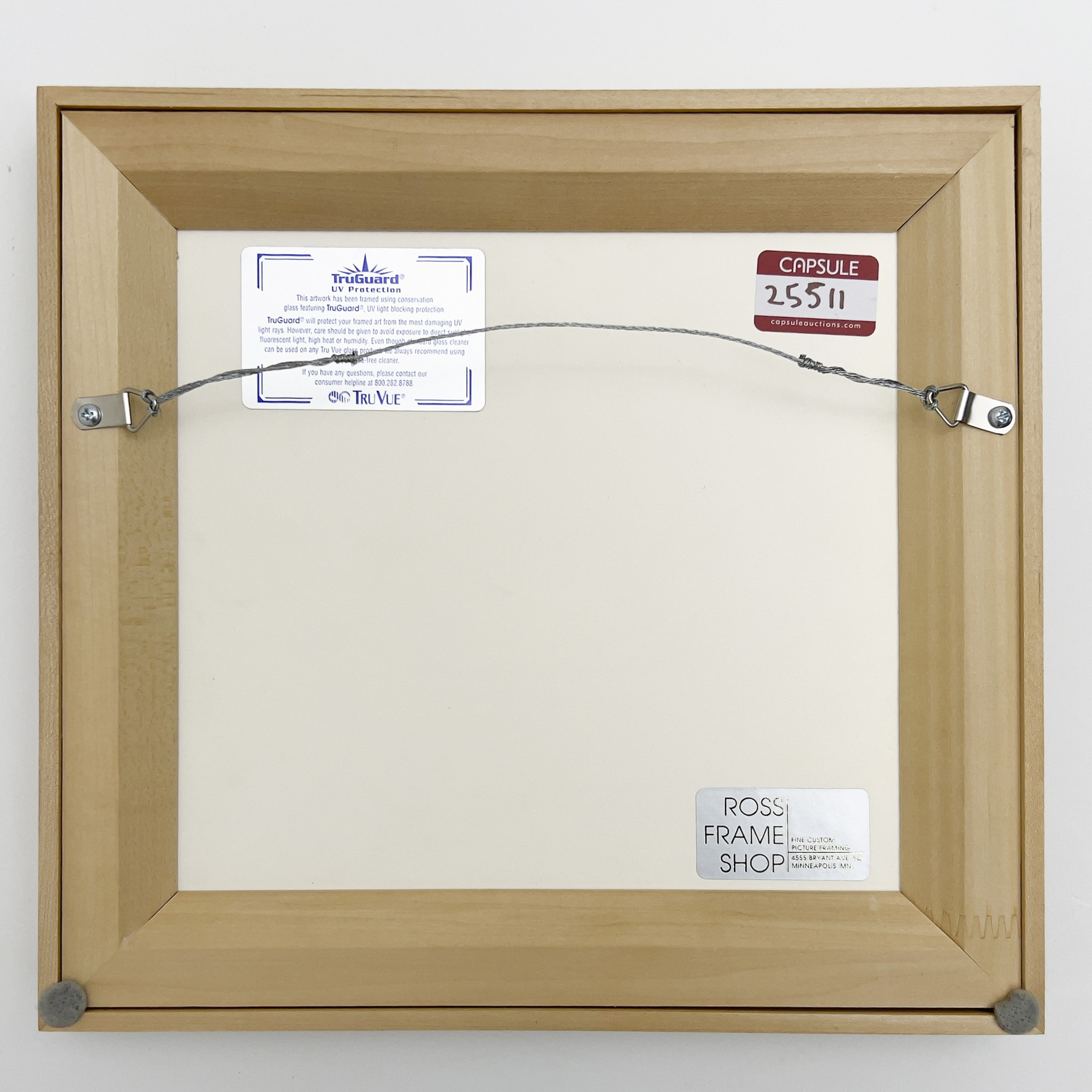 Art has not been examined out of the frame unless otherwise stated. Frames, lampshades, or items described as “supplementary” are not considered integral to the value of the lot and are excluded from condition assessments. This includes any mat, mounting, glazing, hanging apparatus, case, box, or stand. Timepiece movements, lighting elements and items with mechanical or electrical components have not been thoroughly tested and are not covered under warranty by Capsule.