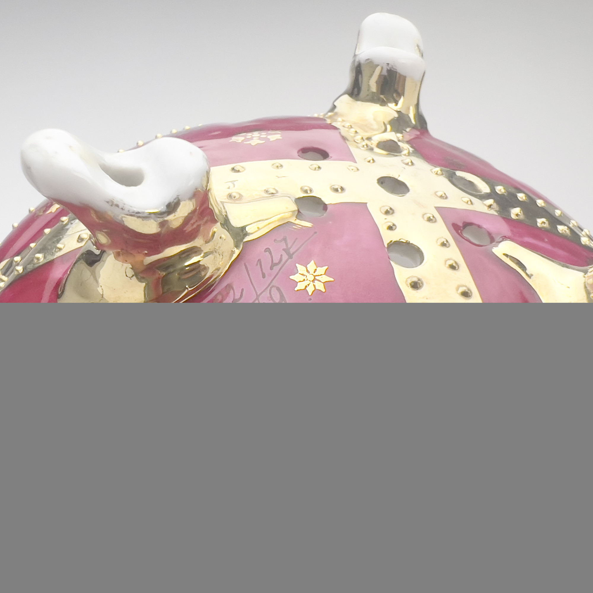 overall good condition, with wear to gilt and some minor chips, cracks to the base of the footed dish