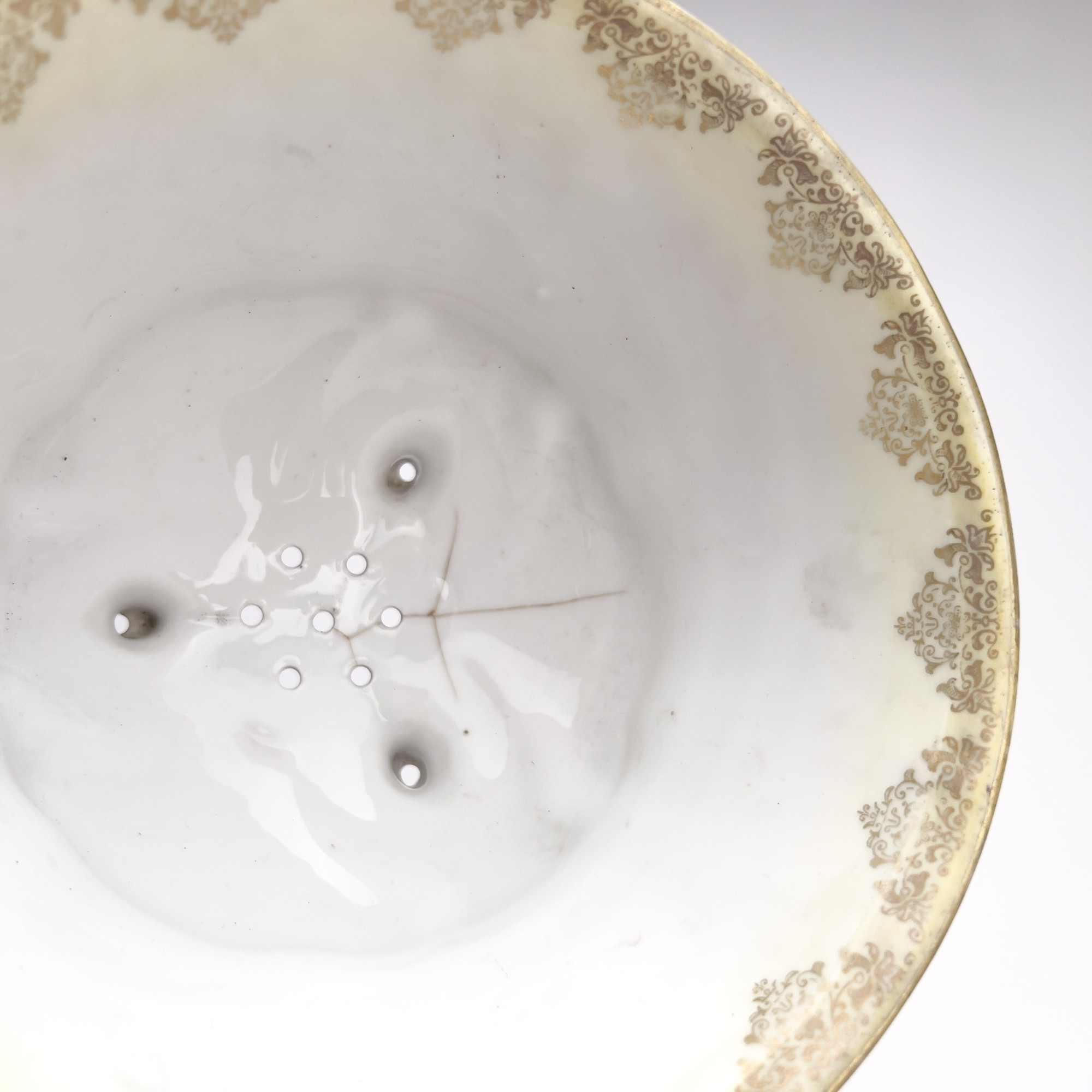 overall good condition, with wear to gilt and some minor chips, cracks to the base of the footed dish