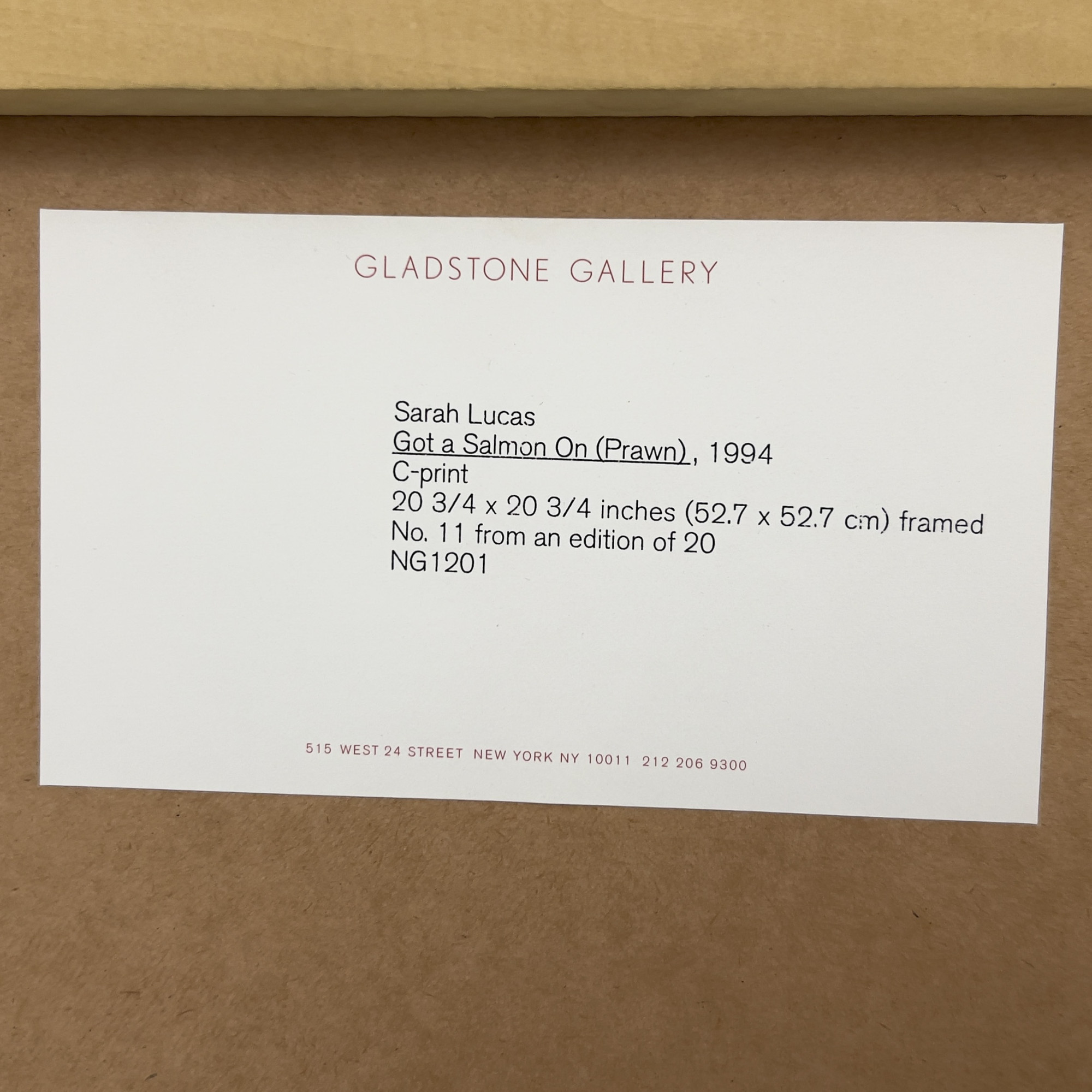 Gladstone Gallery label verso
