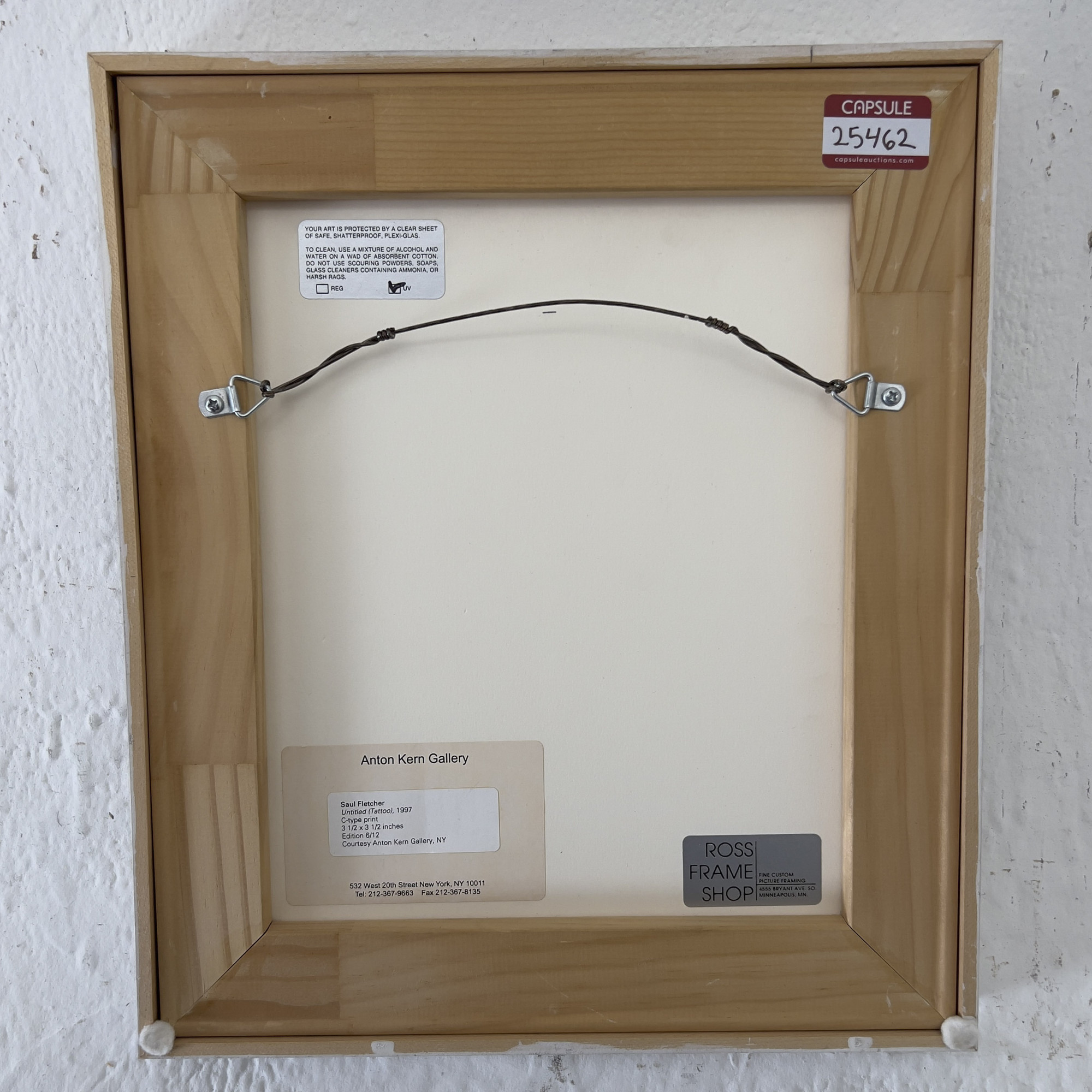 wood frame with UV plexi-glas, dimensions: 14 1/2 x 12 7/8