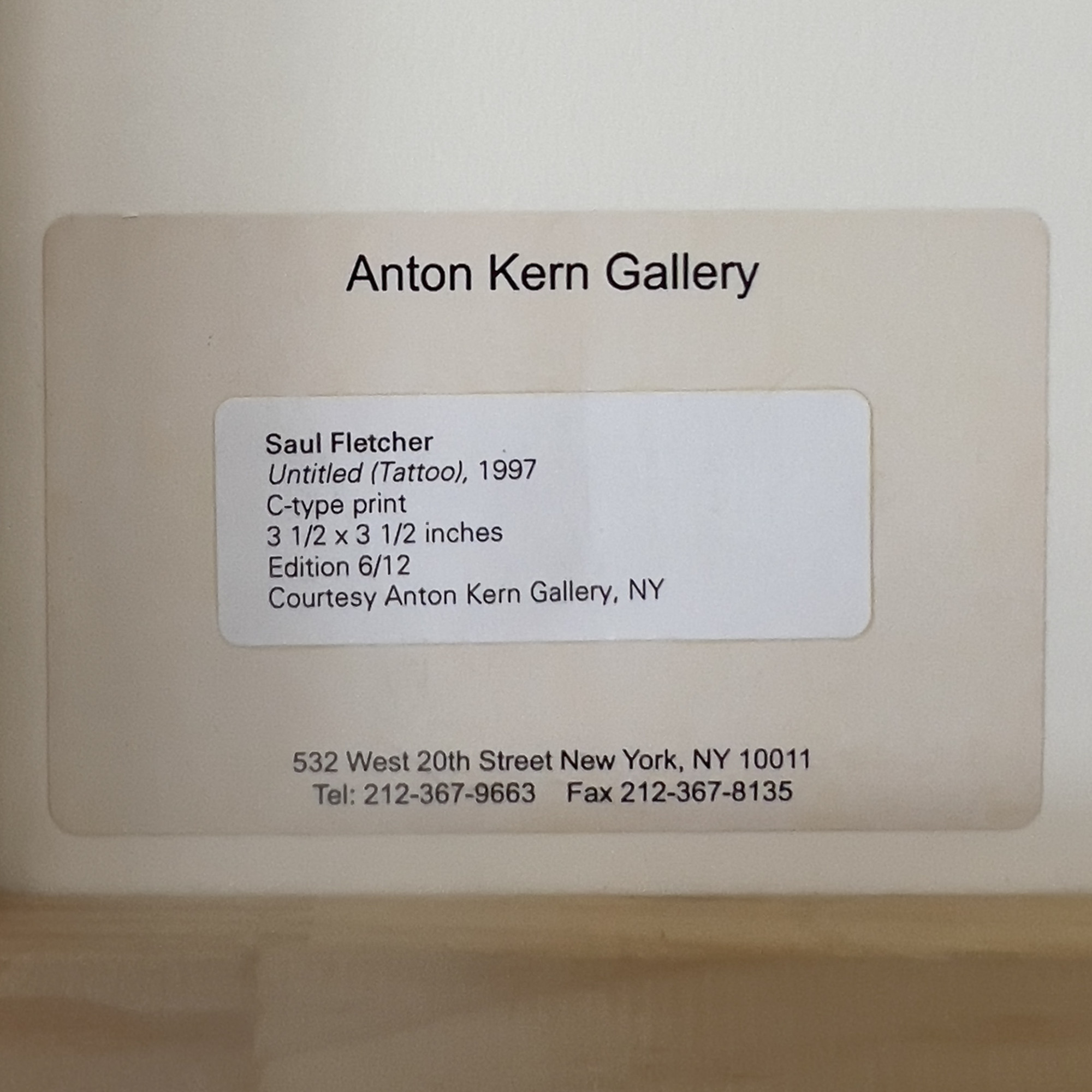 Anton Kern Gallery label verso