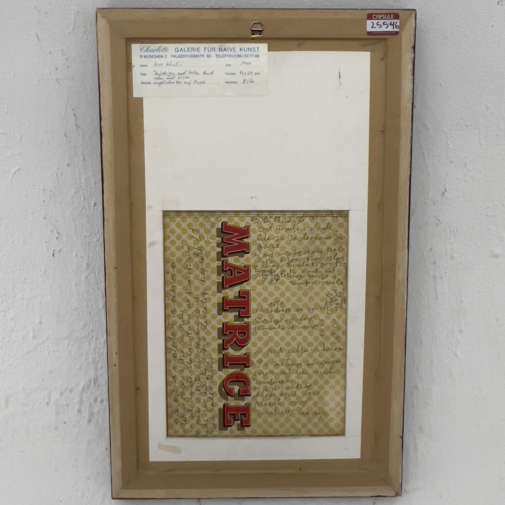Charlotte Galerie Für Naive Kunst label verso