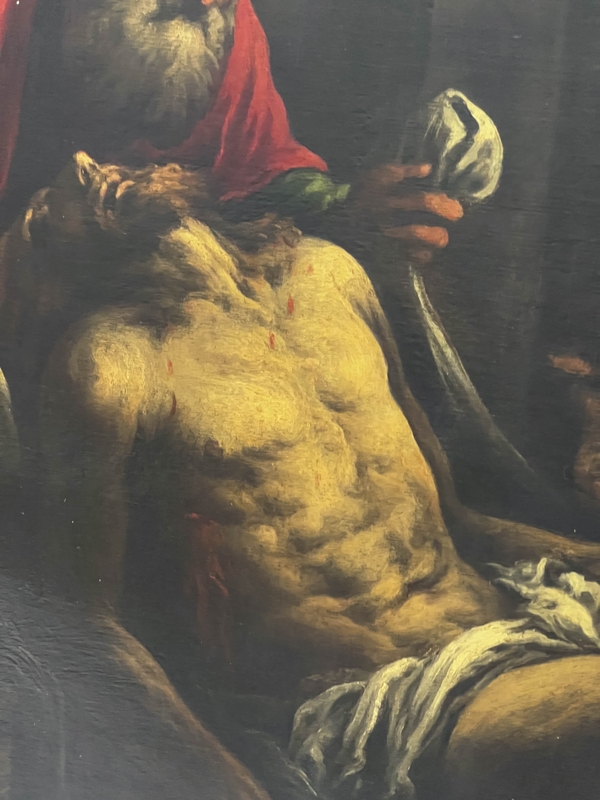Bassano developed several variations of the Deposition or Lamentation over the dead Christ, beginning with his signed altarpiece of 1574 for Santa Maria in Vanzo, Padua