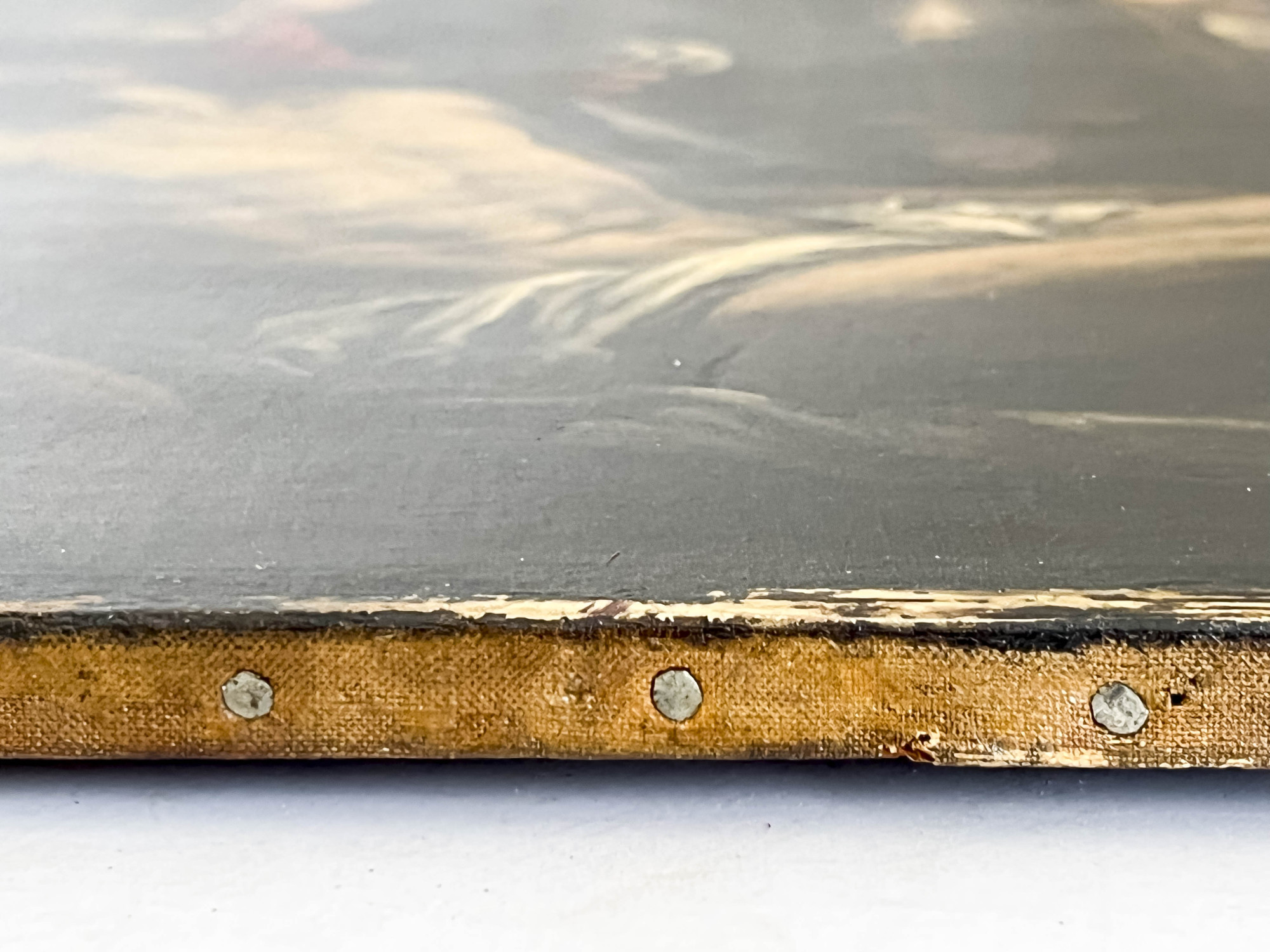 overall in very good condition, areas of fine restoration visible under blacklight, minor bulge to lower left corner; with inspection from a fine art conservator, it is believed that the present lot was likely produced in the 17th century, with later restoration and relining on a later stretcher, likely 19th century French