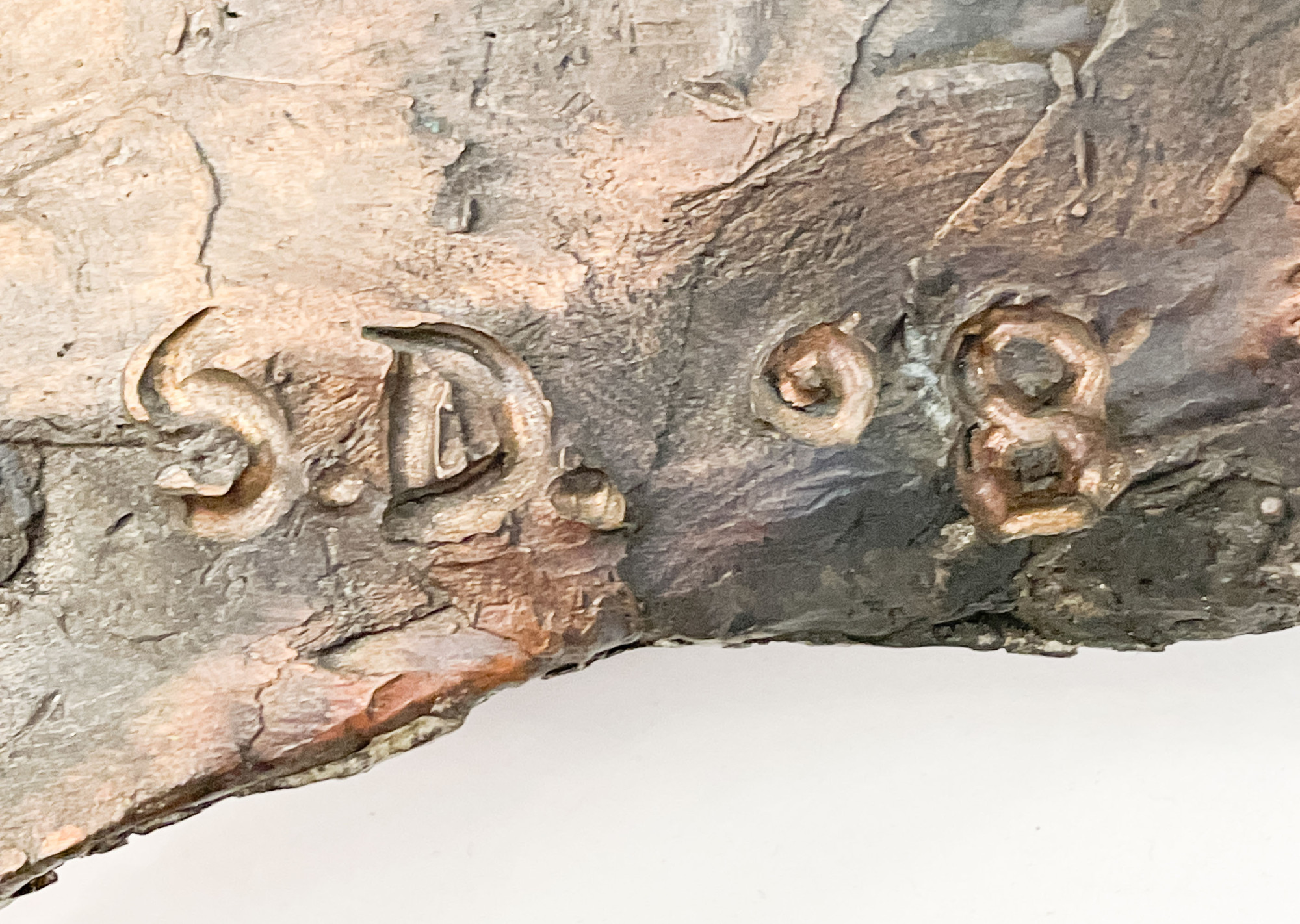 bronze with applied brown patina height: 9 inches incised initials lower right