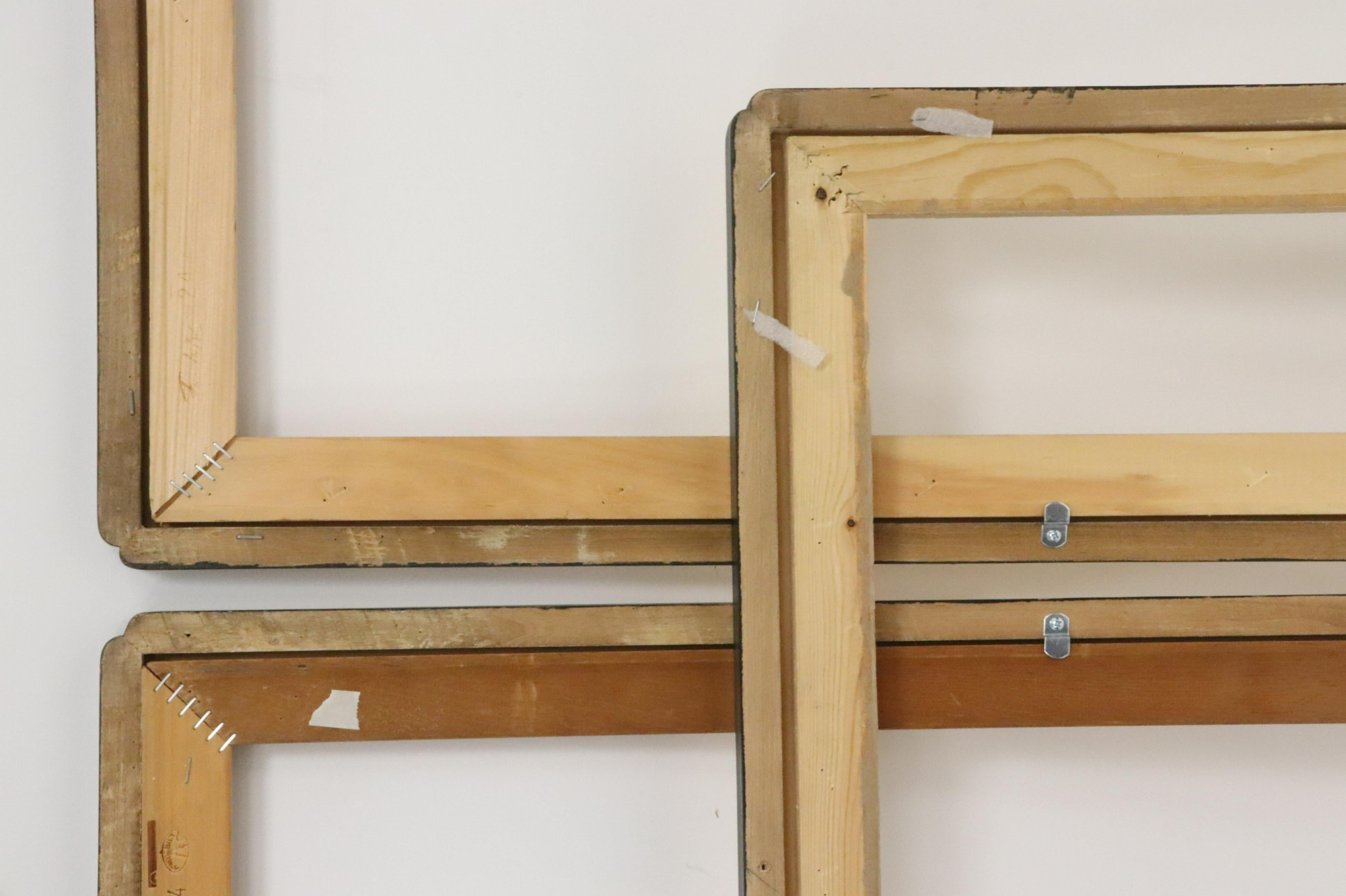 Set of three 1.25" frames with gold leaf front, corners with flower and leaf design, and black painted egdes for painting size 24 x 36" Property from a fourth generation gallery, NYC Dimensions: Exterior: 38 x 26 x 1" (HEAR272/3)(EL)