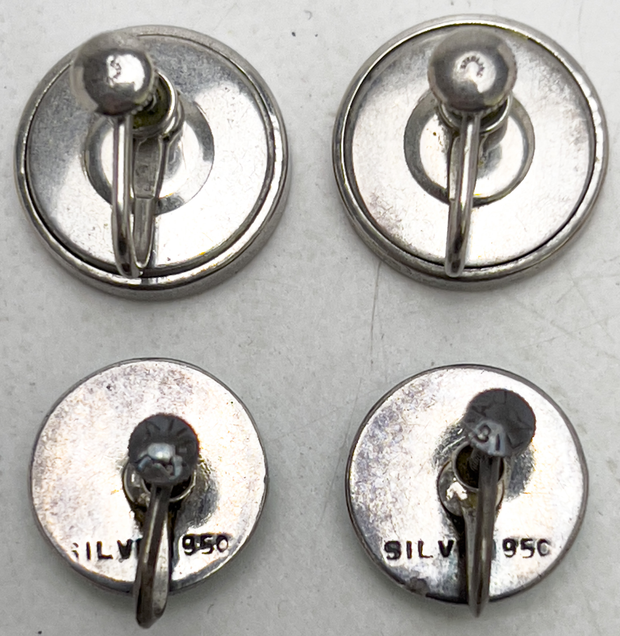each in overall good condition, some gentle tarnishing and other wear, one green earring with minor chip