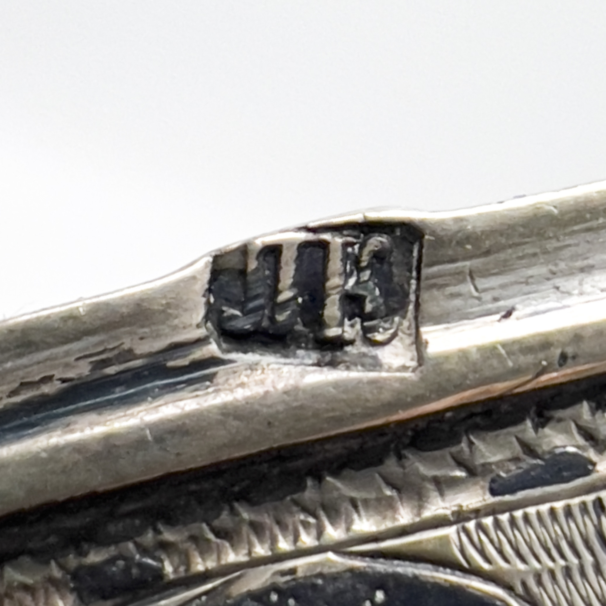 Comprising 800 silver Russian napkin ring, 875 silver and cloisonné Russian napkin ring, sterling silver filigree cuff bracelet, pair of 950 silver screw back earring with green setting, and a pair of sterling silver screw back earrings