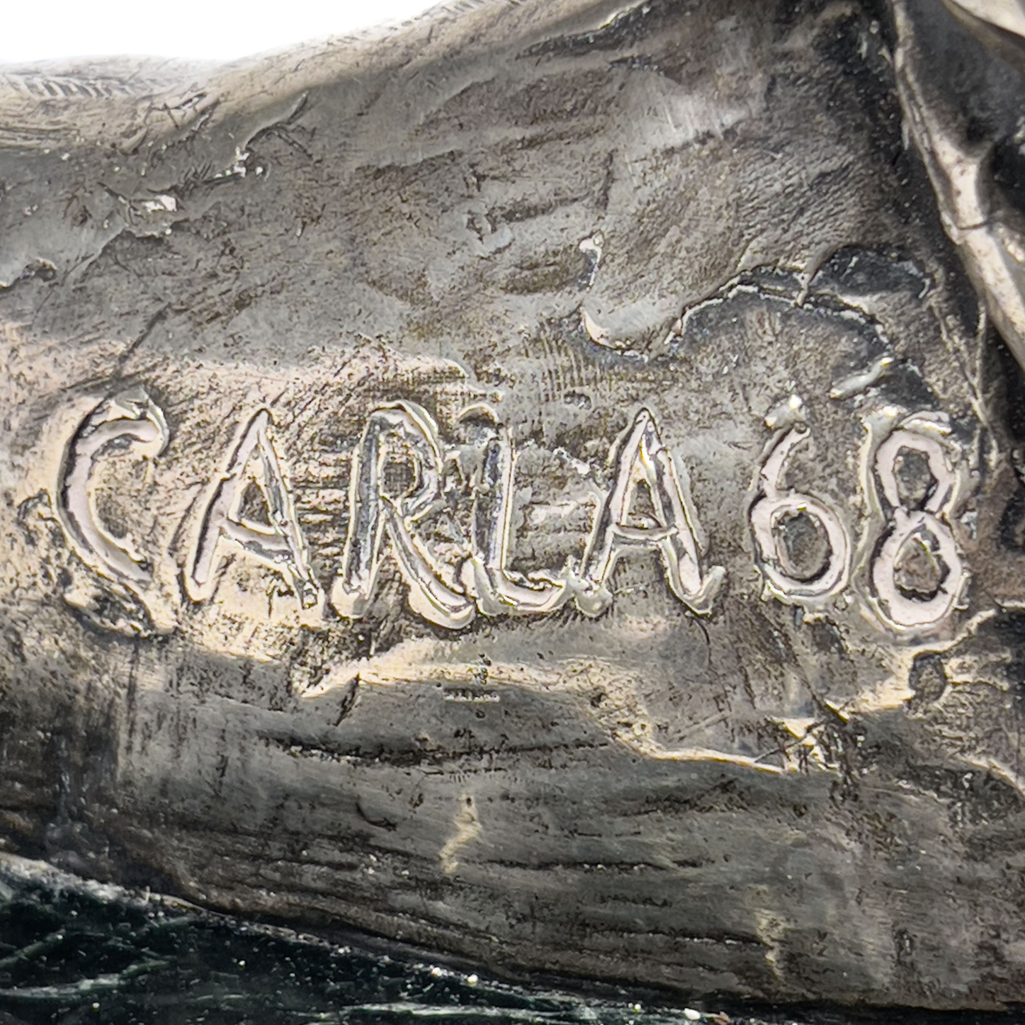 bronze, silver finish 15 1/2 x 14 1/2 x 9 inches signed "Carla" to reverse