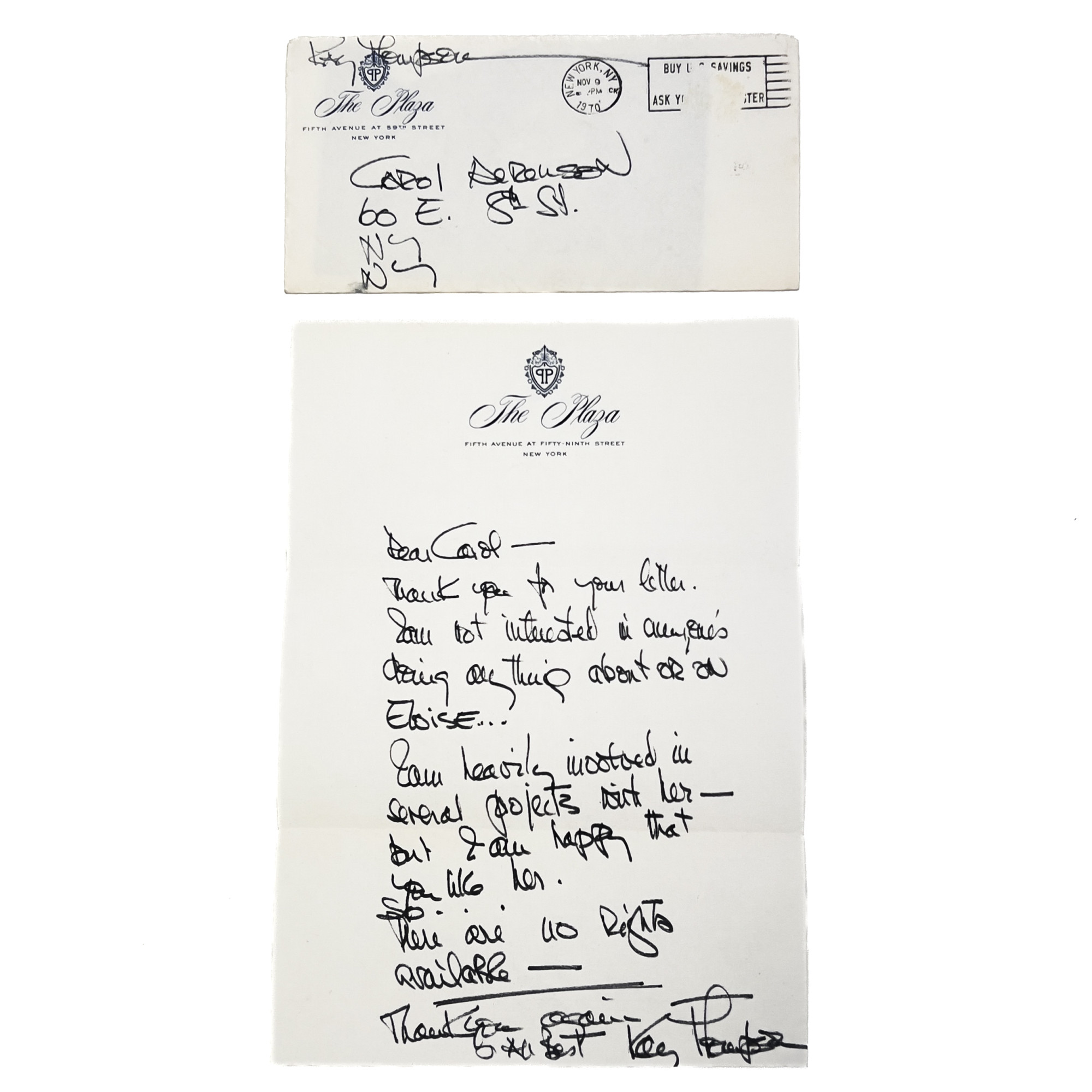 Collection of Eloise books, 4 signed by Hillary Knight, Also included is a letter from Kay Thompson on Plaza Hotel stationary