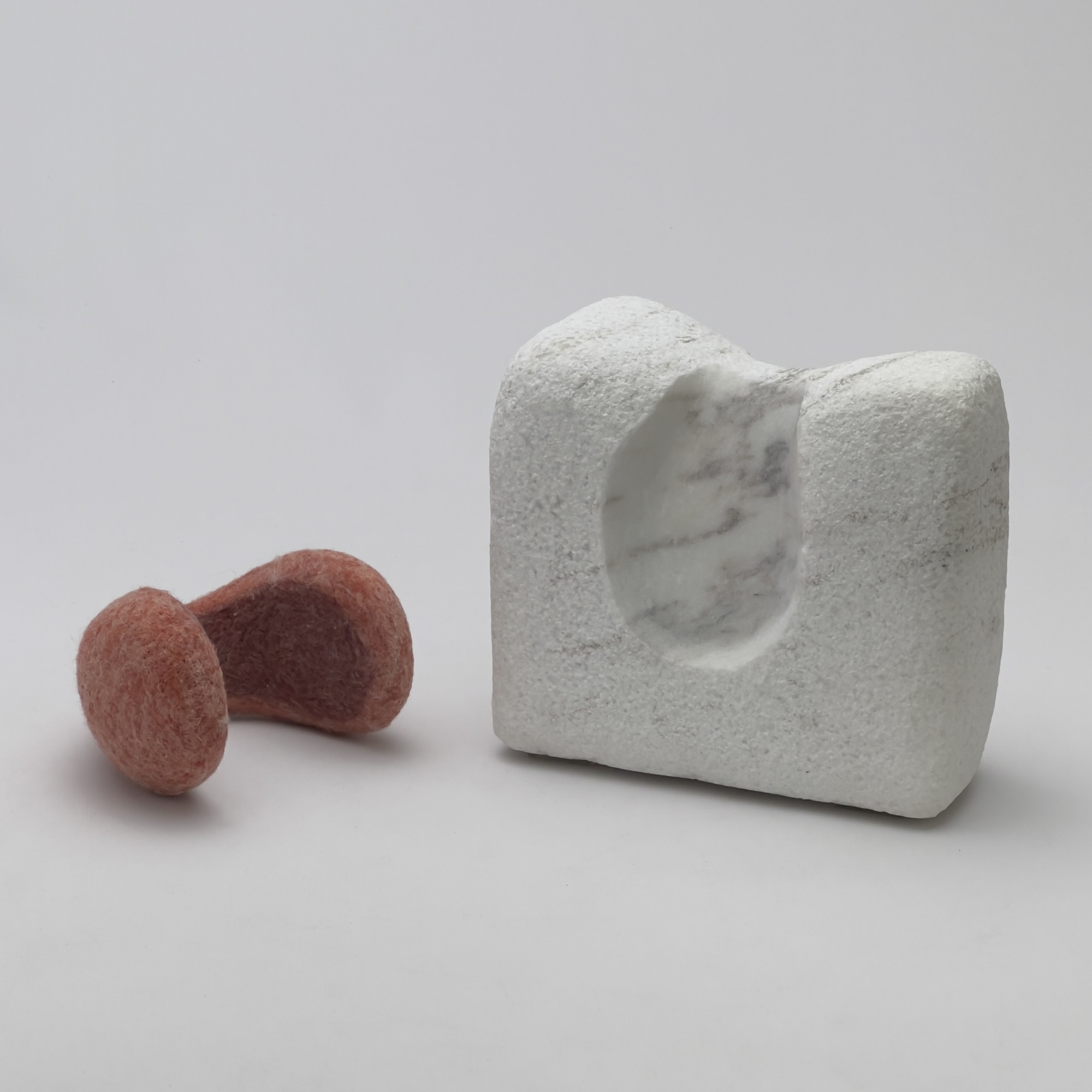 marble and wool 6 x 7 x 6 inches initials inscribed to bottom