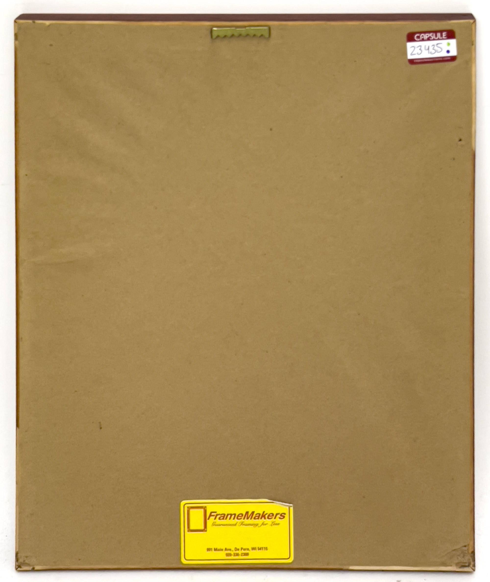 Art has not been examined out of the frame unless otherwise stated. Frames, lampshades, or items described as “supplementary” are not considered integral to the value of the lot and are excluded from condition assessments. This includes any mat, mounting, glazing, hanging apparatus, case, box, or stand. Timepiece movements, lighting elements and items with mechanical or electrical components have not been thoroughly tested and are not covered under warranty by Capsule.