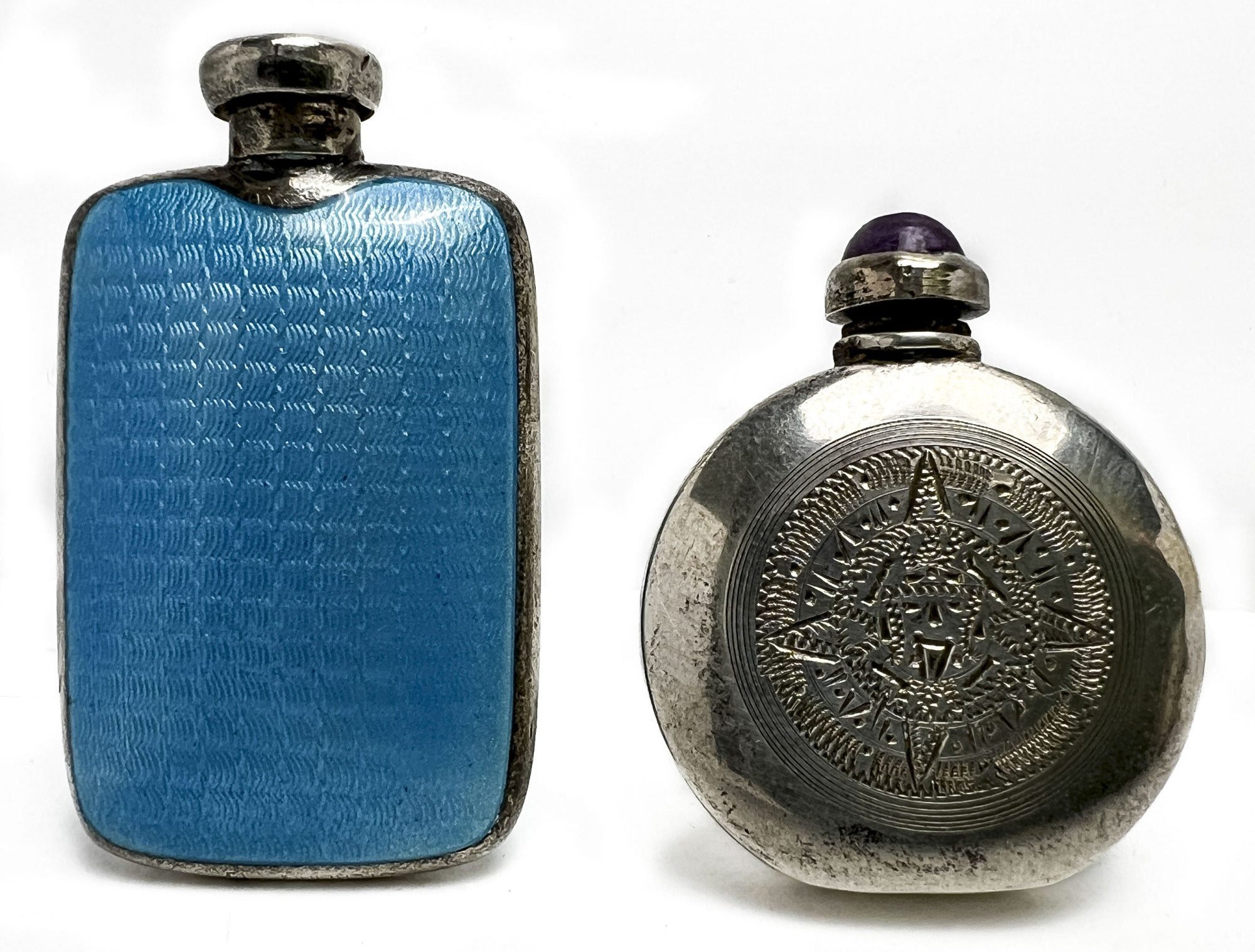 along with one small perfume bottle with amethyst cap, marked 900, weighing approximately 9 grams