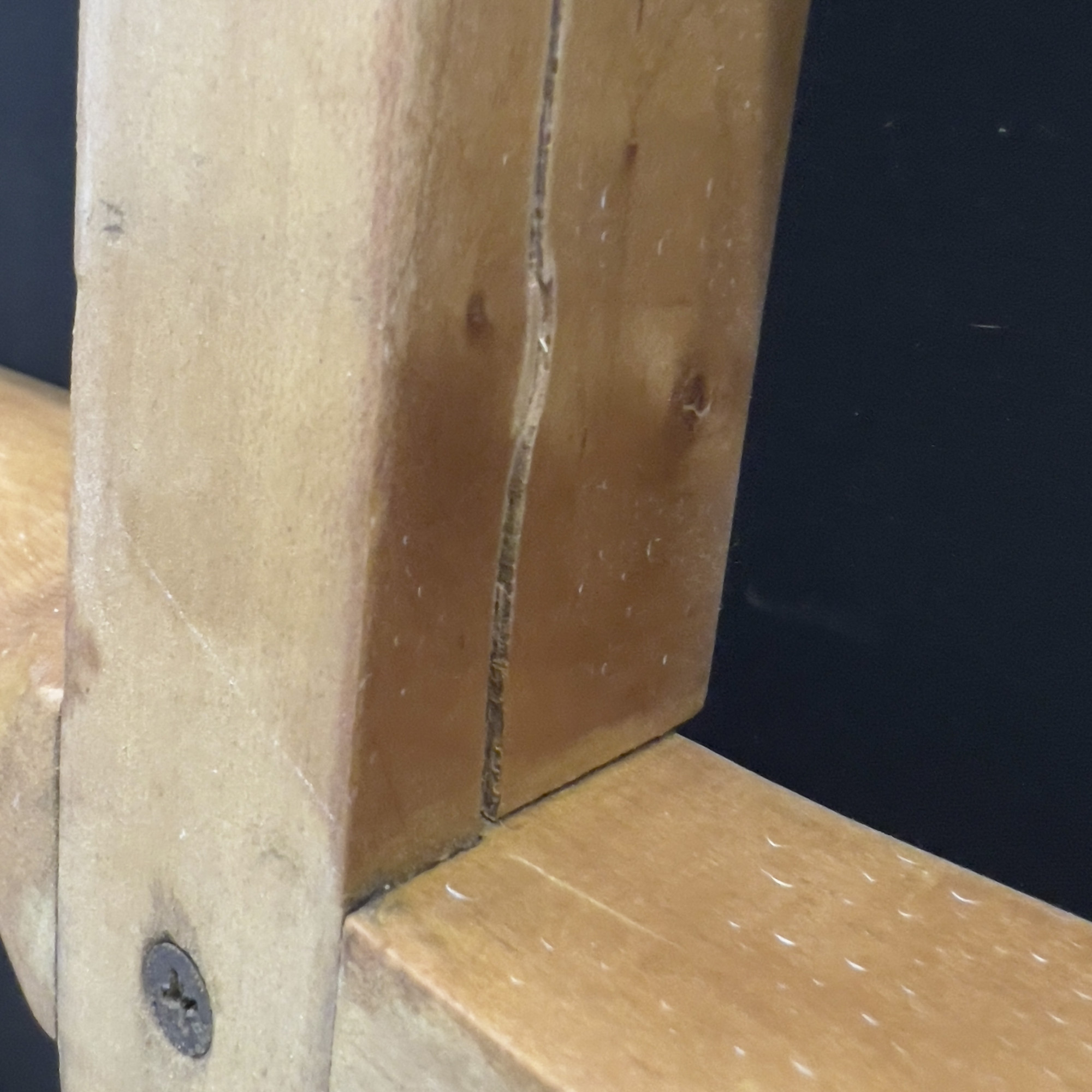 overall good condition, stains and wear to upholstery, some scuffs to the wood, crack to leg support on one side