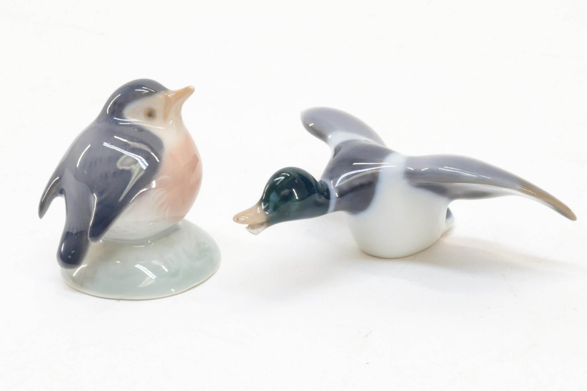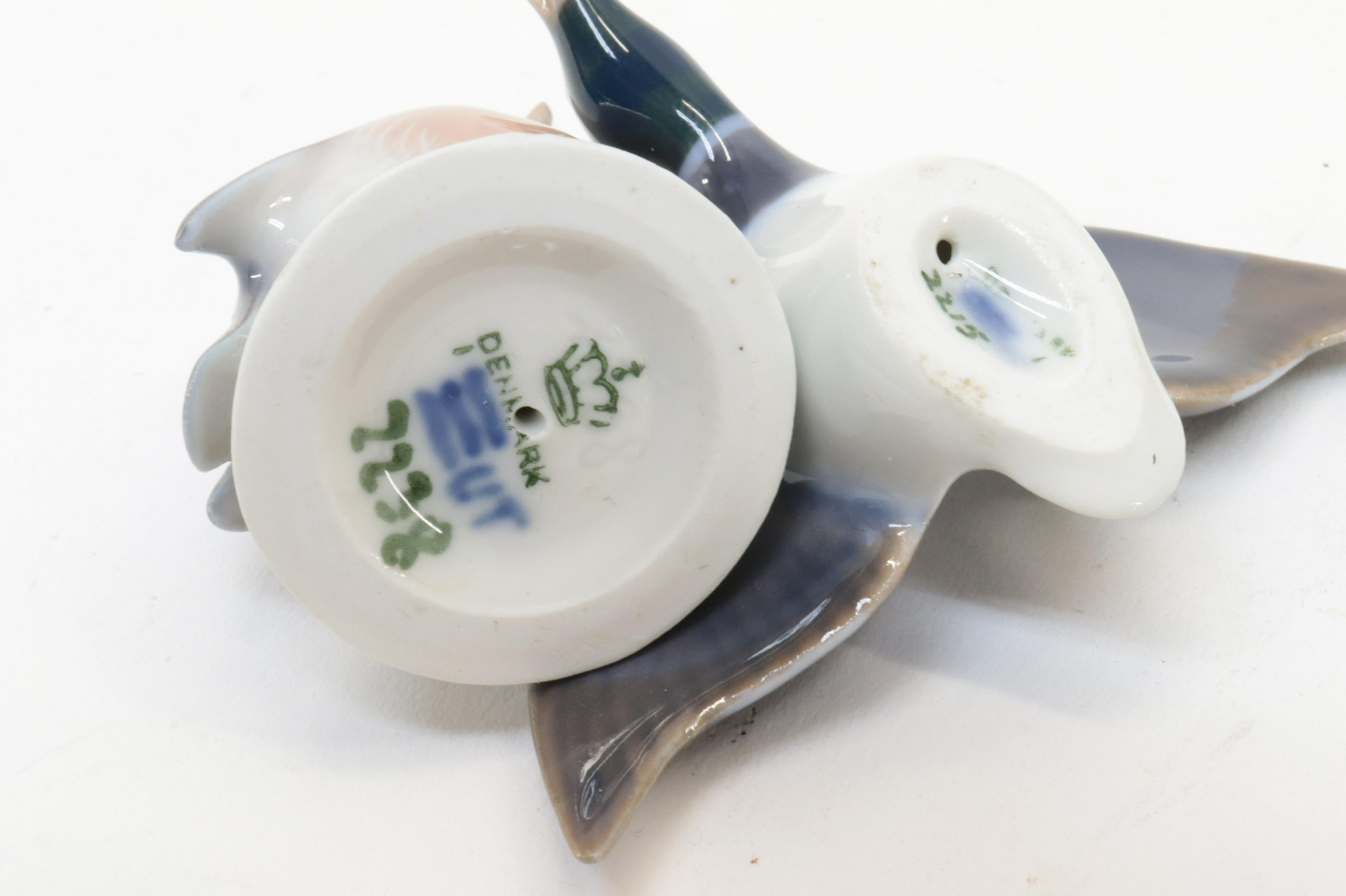 Group of Tabletop Items, 20th C., includes Continental .800 Silver Porcupine Toothpick Holder along with Crystal Faceted Dome Lidded Canister ,a Orrefors Tall Crystal Vase, 2 Royal Copenhagen Porcelain Birds and an intuit sculpture of a seal, underside signed, dated 9-15-93