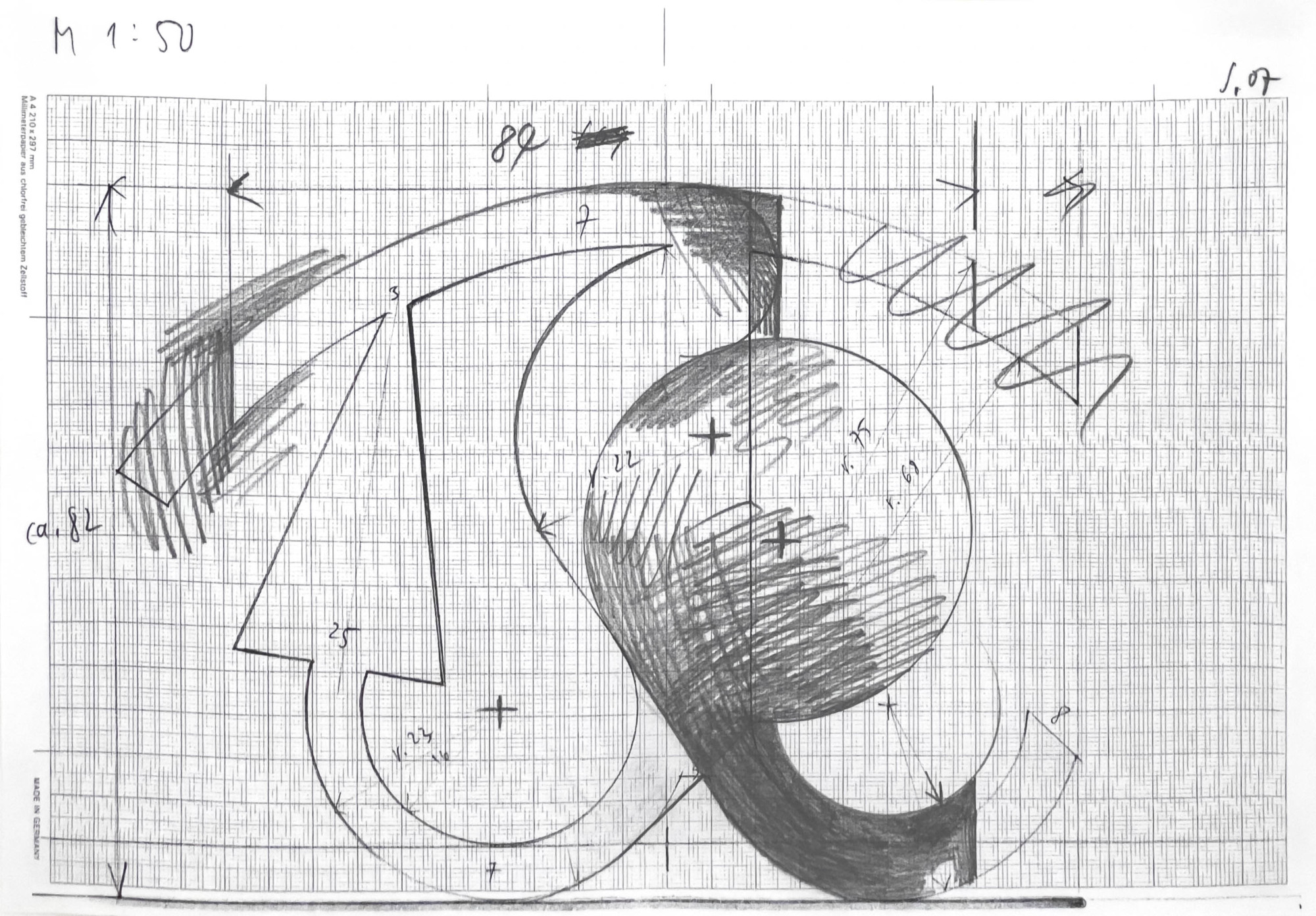 pencil on photocopy sheet: 8 1/4 x 11 3/4 inches initialed upper right