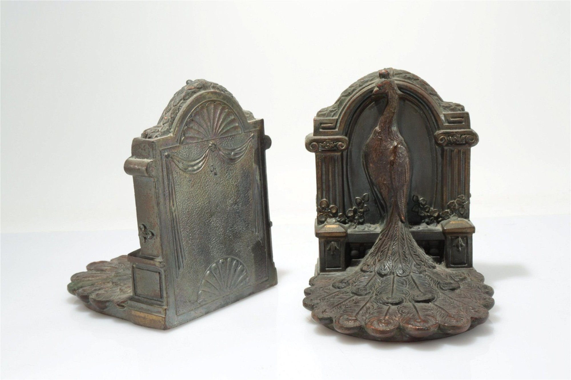 Three Vintage Bookends - Bronze Figurals; Peacocks