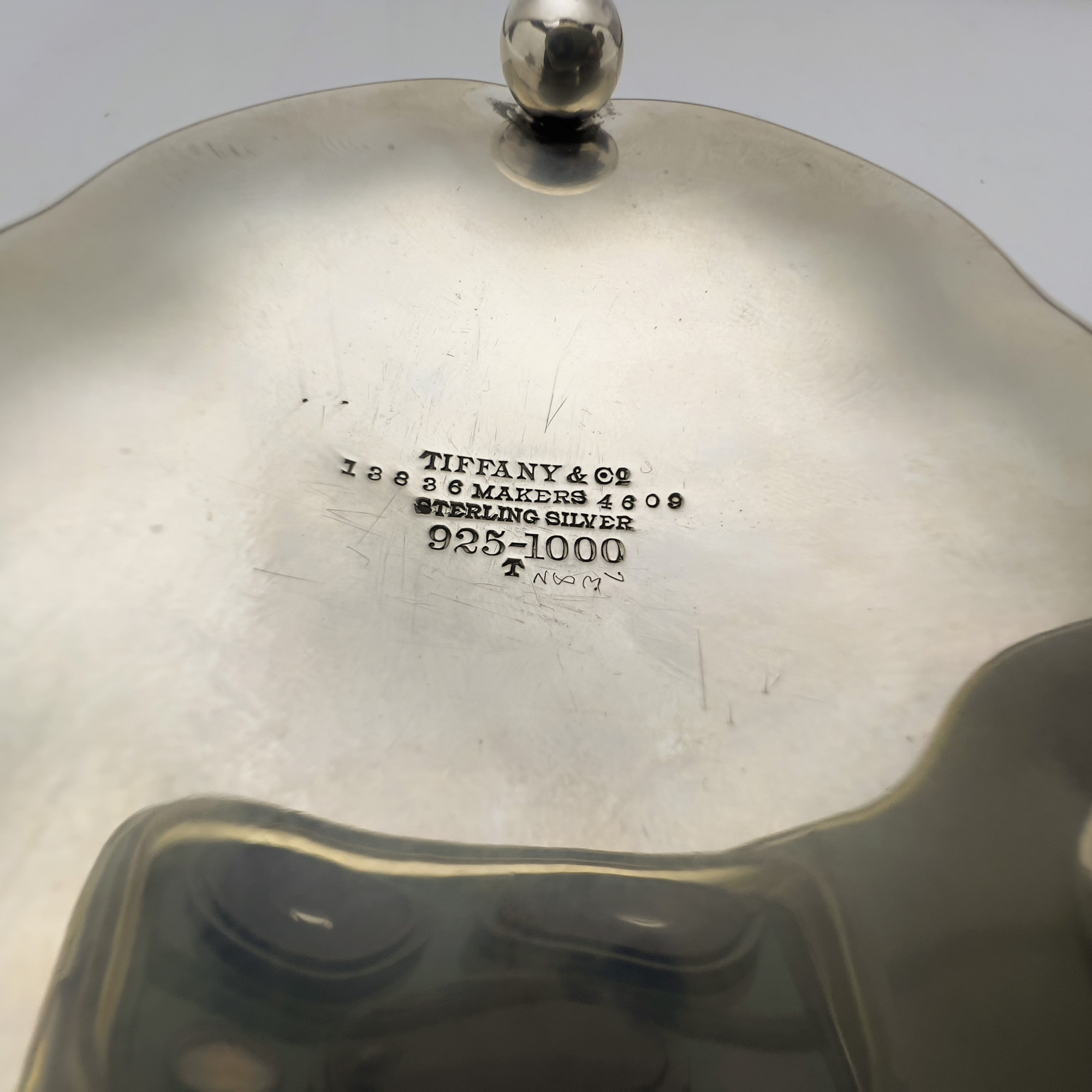 Tiffany sterling silver group, comprising of two sterling flower-shaped serving bowls by Tiffany & Co, the smaller engraved with the letter "S" to center