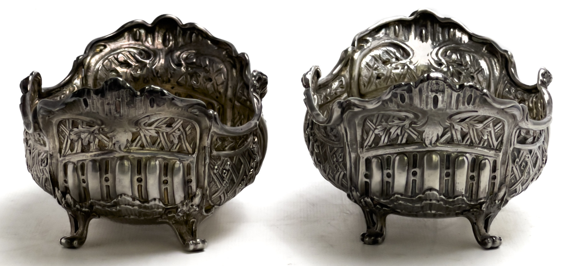 Comprising two small repoussé footed dishes, tested for sterling silver