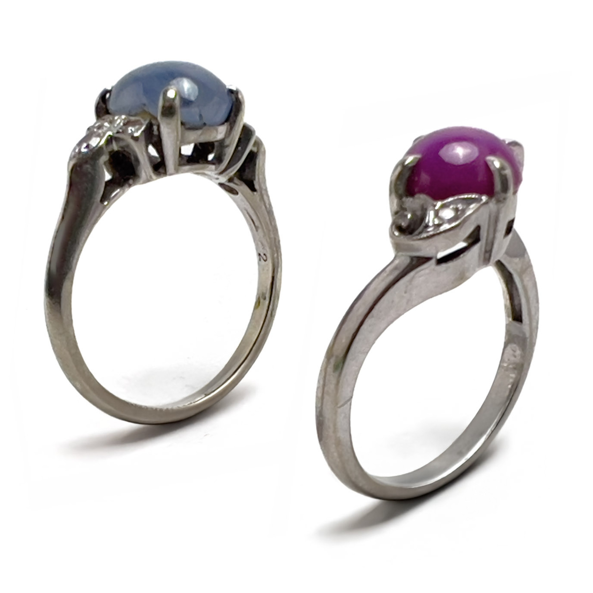 14K gold, 18K gold, star sapphire, diamond each stamped