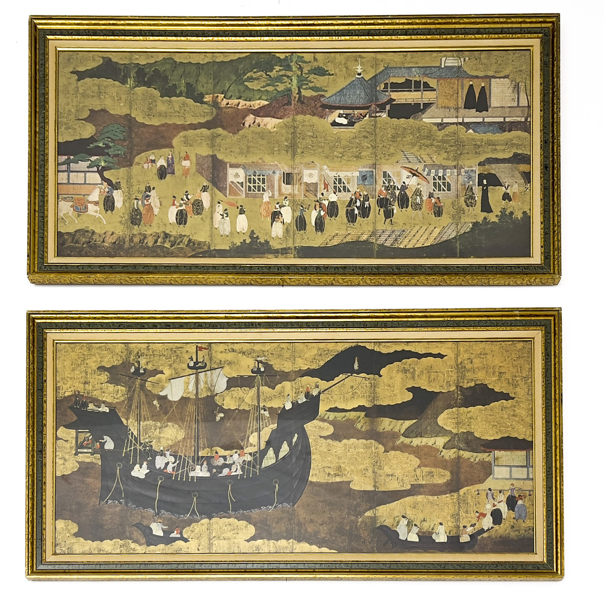 Two Panel Screenprint, Portuguese Ship Entering Nagasaki Harbor (20th century)