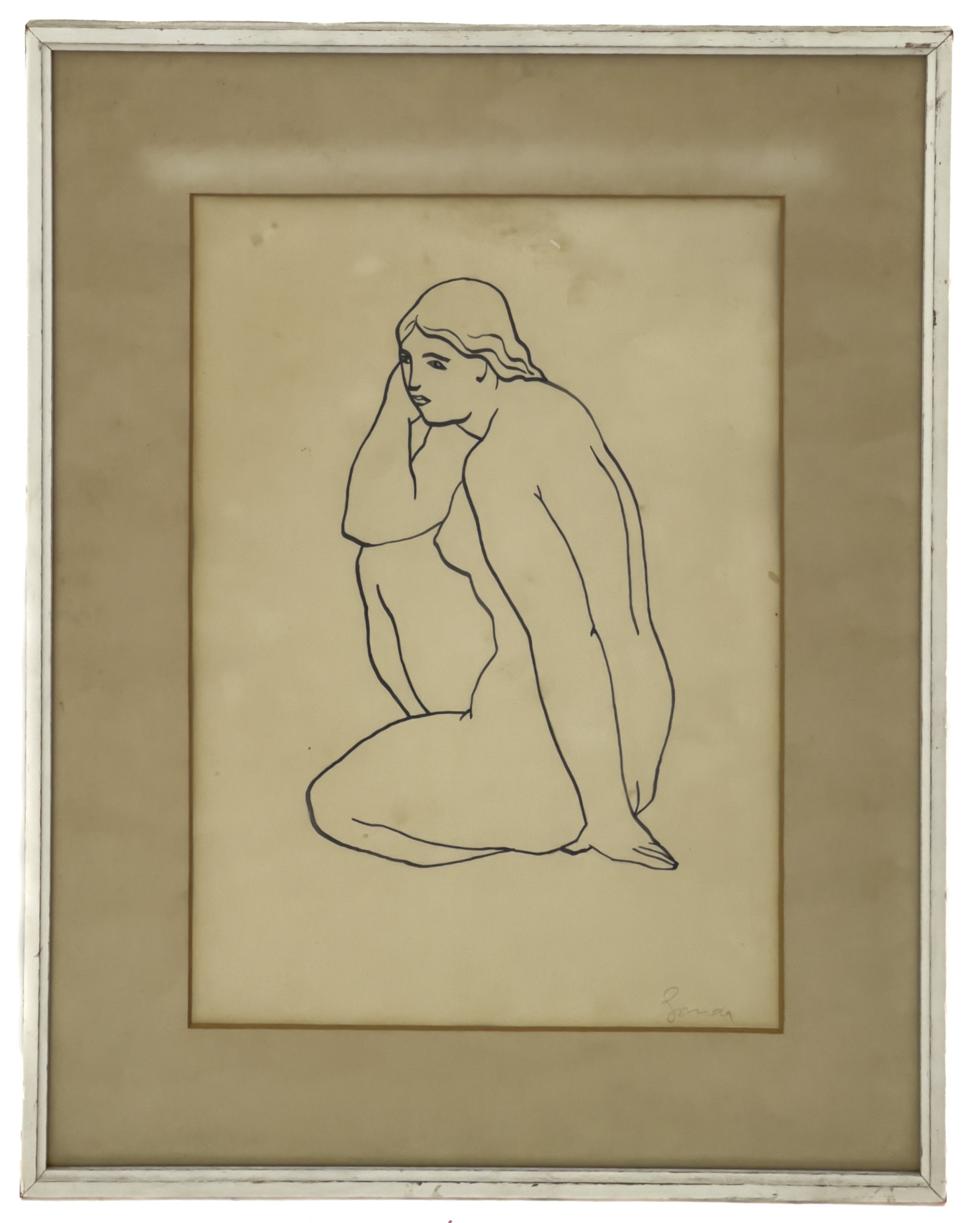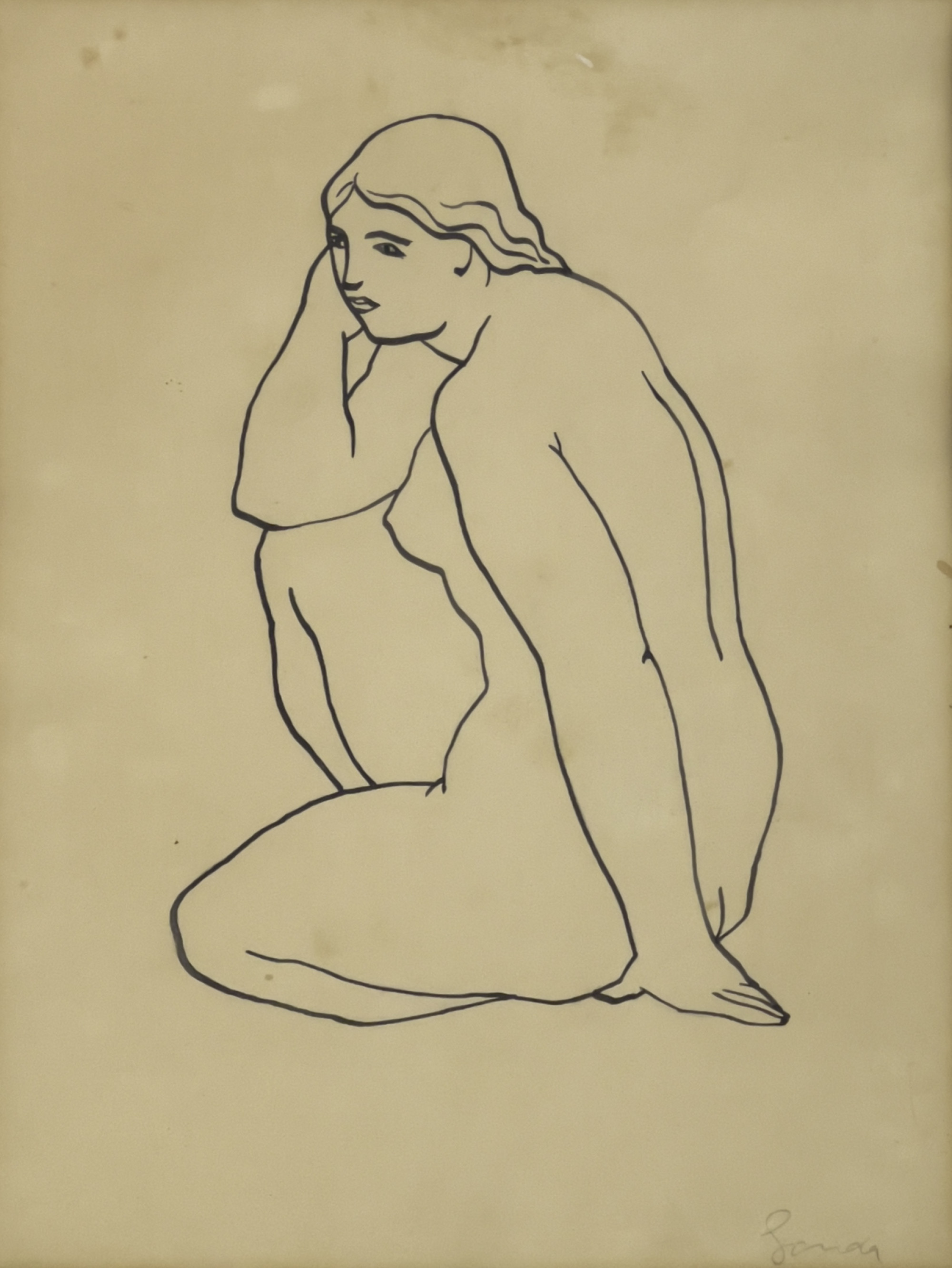 Contour drawing of a nude woman in the style of Aristide Maillol