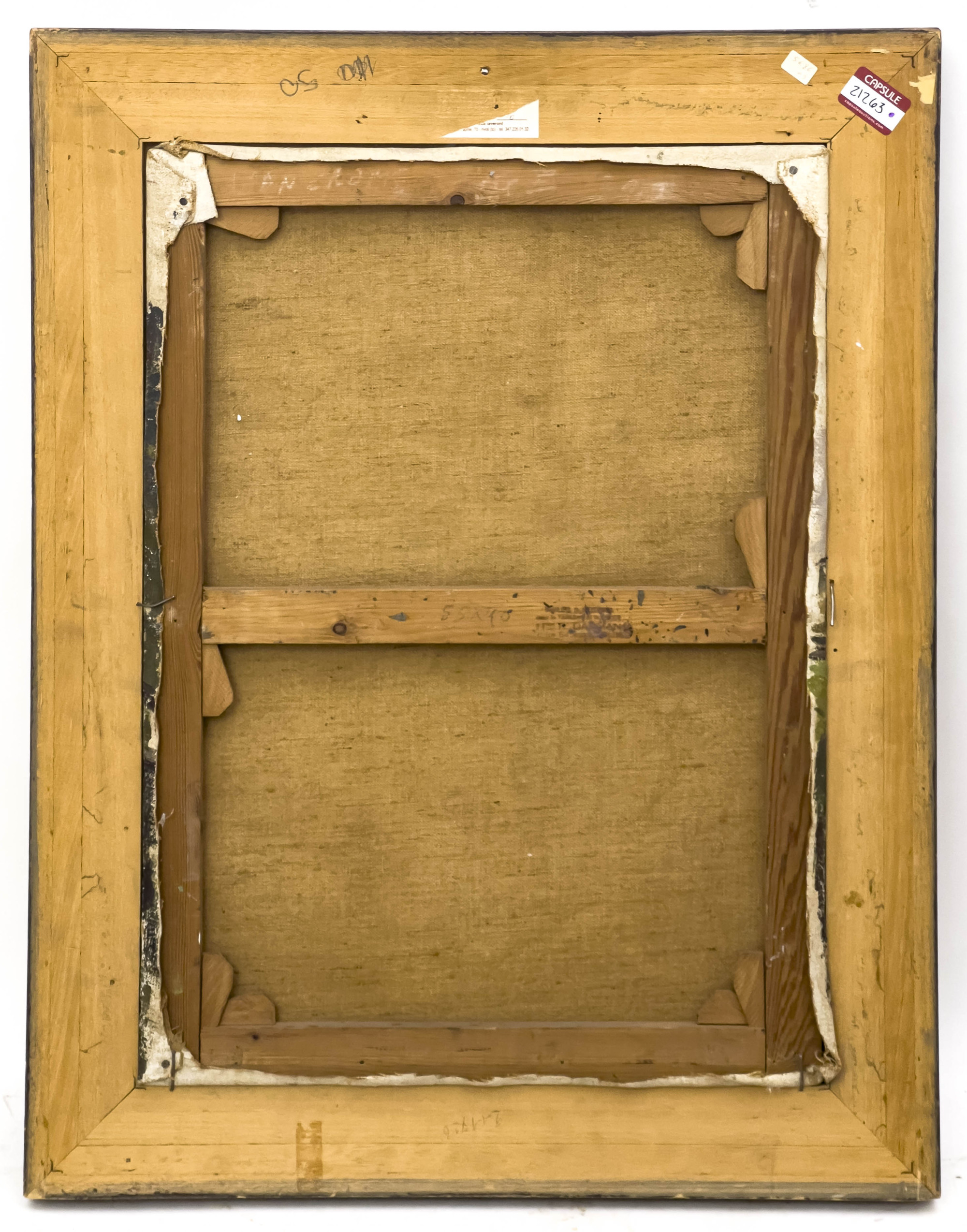 overall good condition, medium is well attached to the support, very minor fraying of canvas fibers