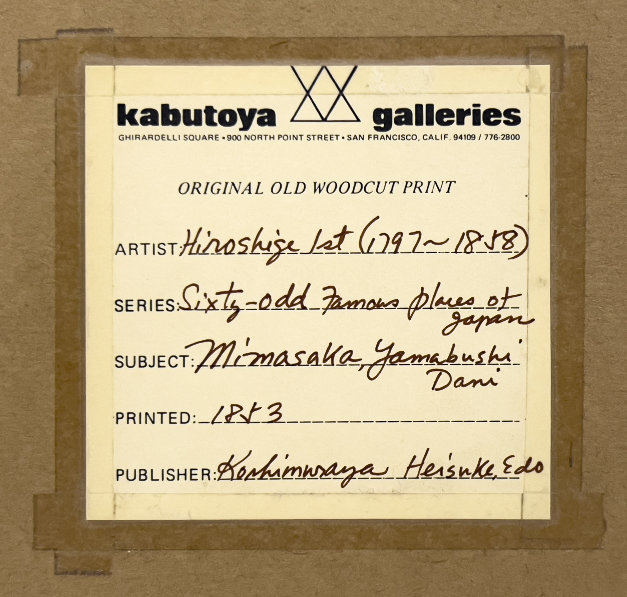 Kabutoya Galleries, Japan label affixed to verso