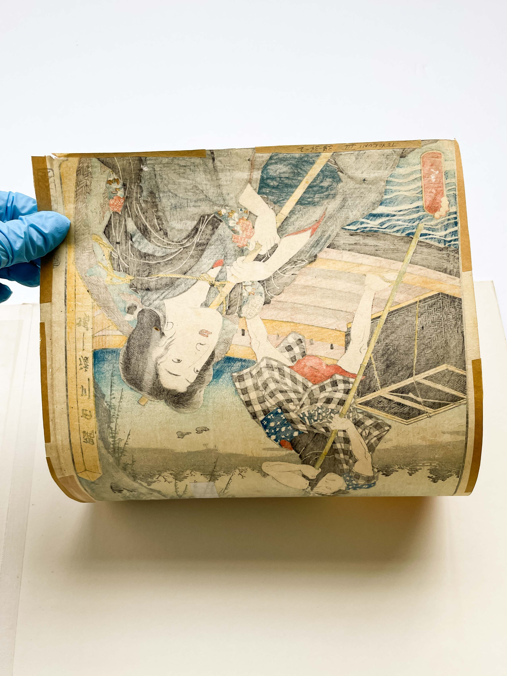 color woodblock print sheet: 14 1/8 x 9 3/4 inches
