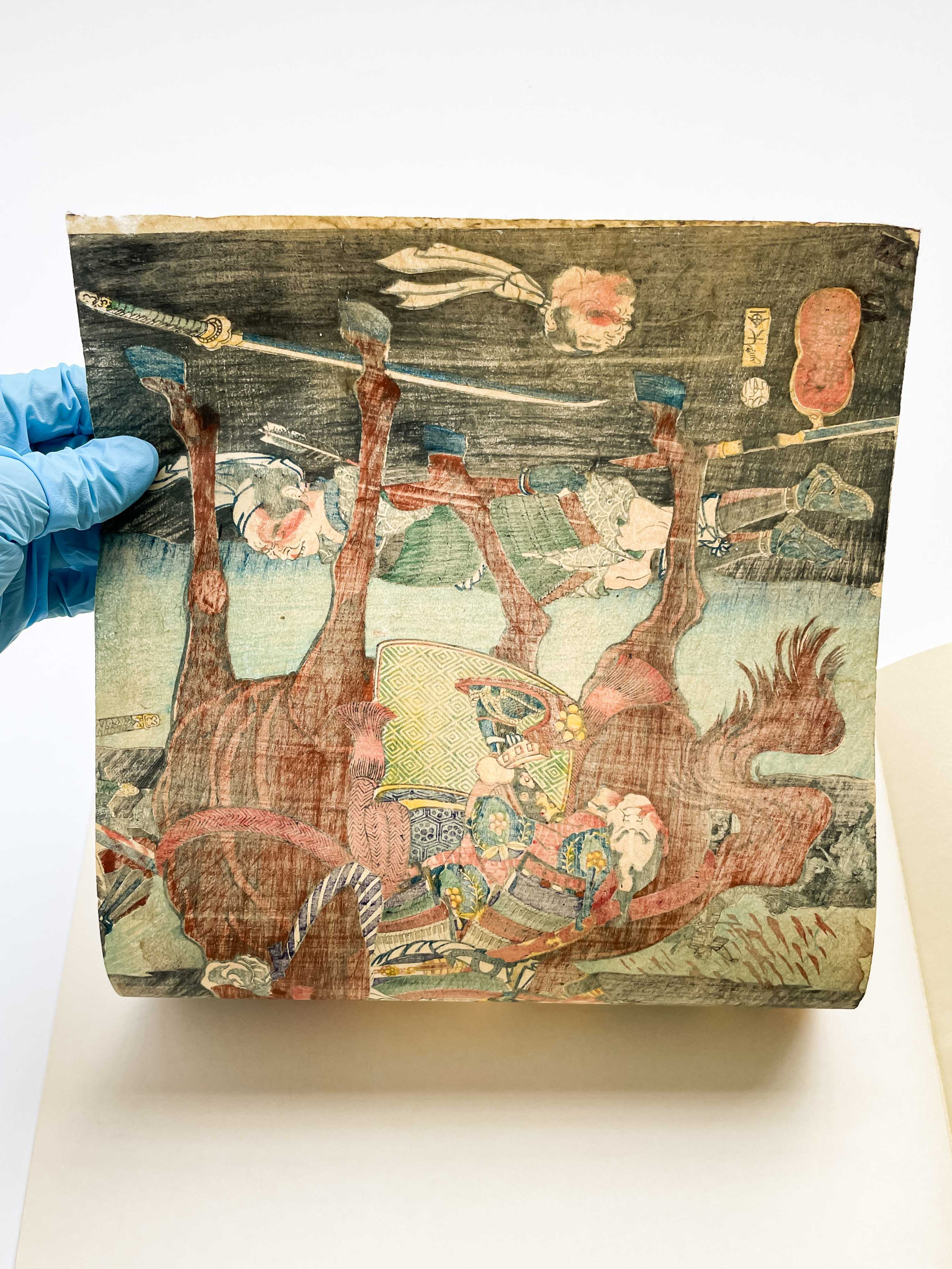 color woodblock print sheet: 14 1/2 x 9 7/8 inches