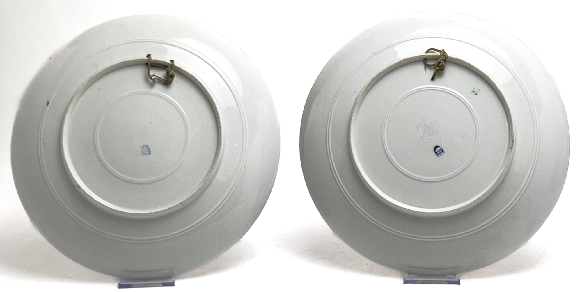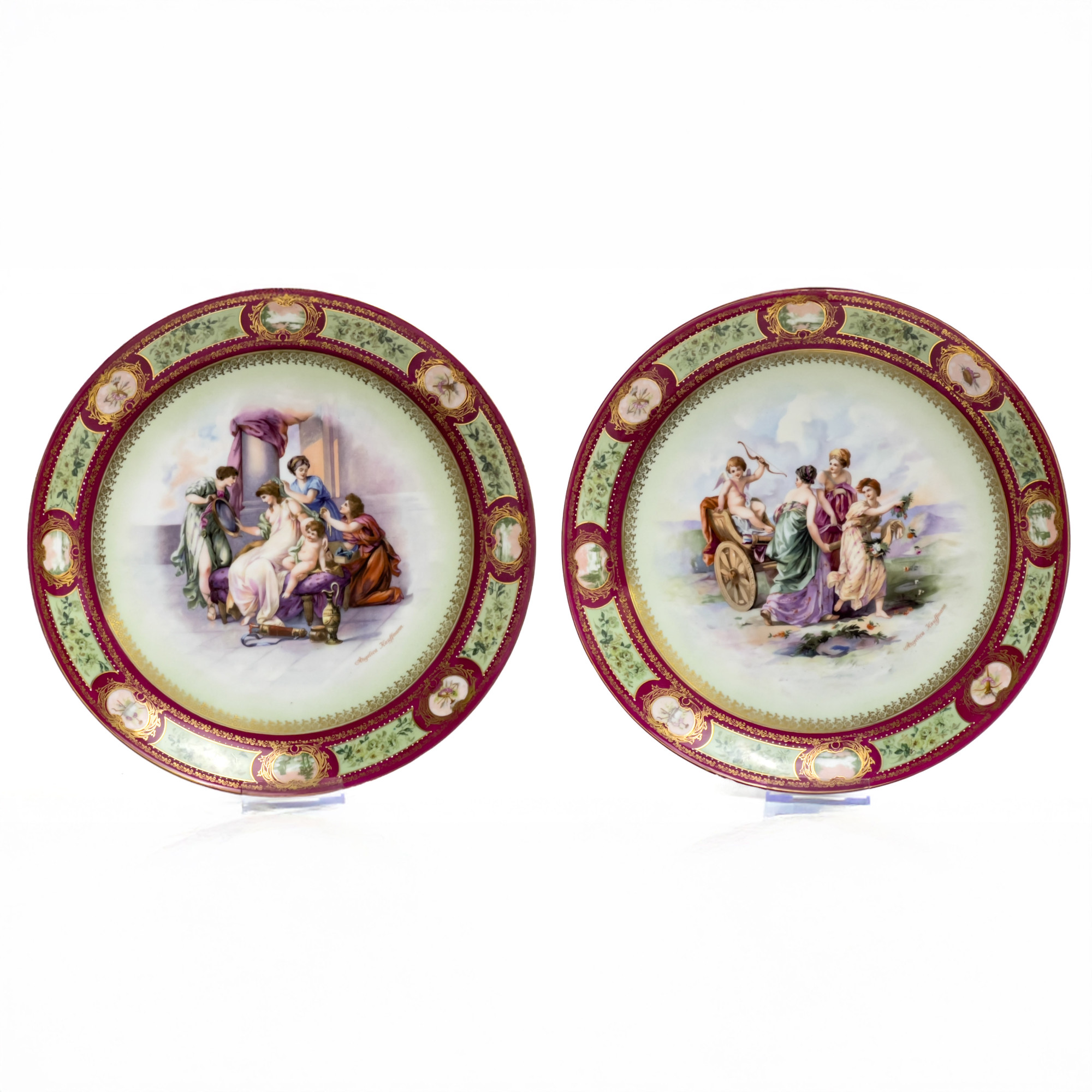 comprising two Royal Vienna plates with gilt rims and decoration, decorated with scenes after Angelics Kauffmann, hanging mechanism to backs
