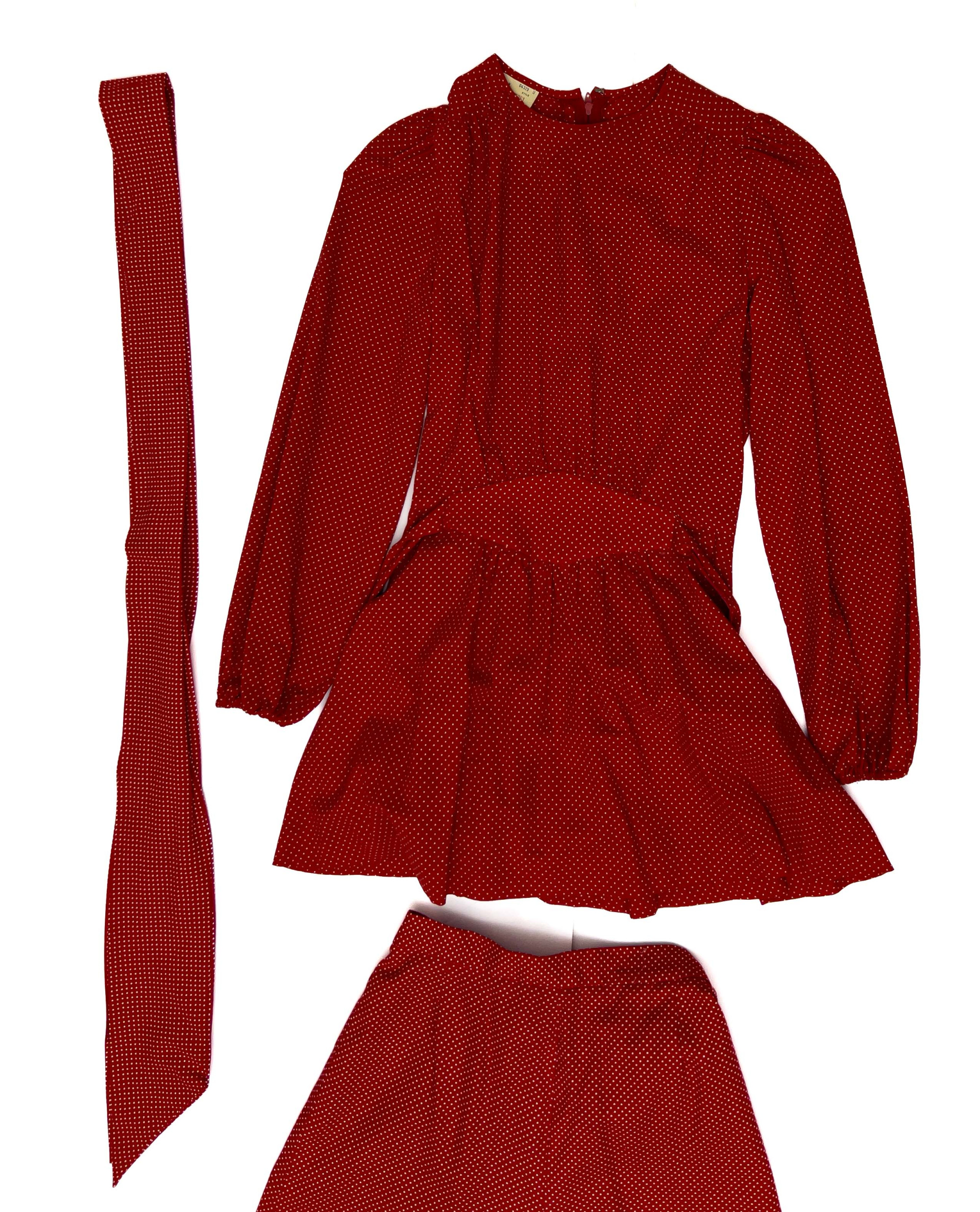 Blassport matching set comprised of wide leg pants, long sleeve top, halter top, and belt, size 4, 51% cotton 49% rayon