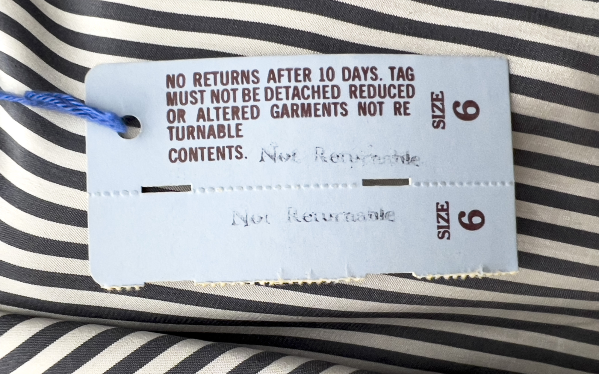 All garments and accessories are offered “as is,” and Capsule Auctions makes no guarantees regarding condition, fit, or wearability. Signs of age, wear, or prior use, should be expected and the absence of any reference to the condition of a lot does not imply that the lot is in perfect condition or completely free from imperfections. We strongly encourage prospective buyers to view items in person or request additional photos and details prior to bidding, as all sales are final.