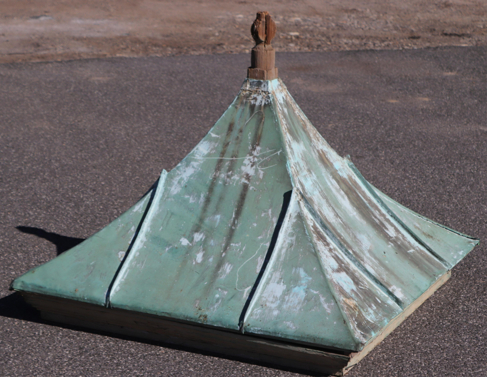 Standing seam copper sheeting with naturally oxidized patina. Wood framed. Wood finial. Not as heavy in weight as dimensions/appearance indicates. Dimensions: 48" x 49 x 40H Property from a Northwest Connecticut collection (JAMC360)(JP)