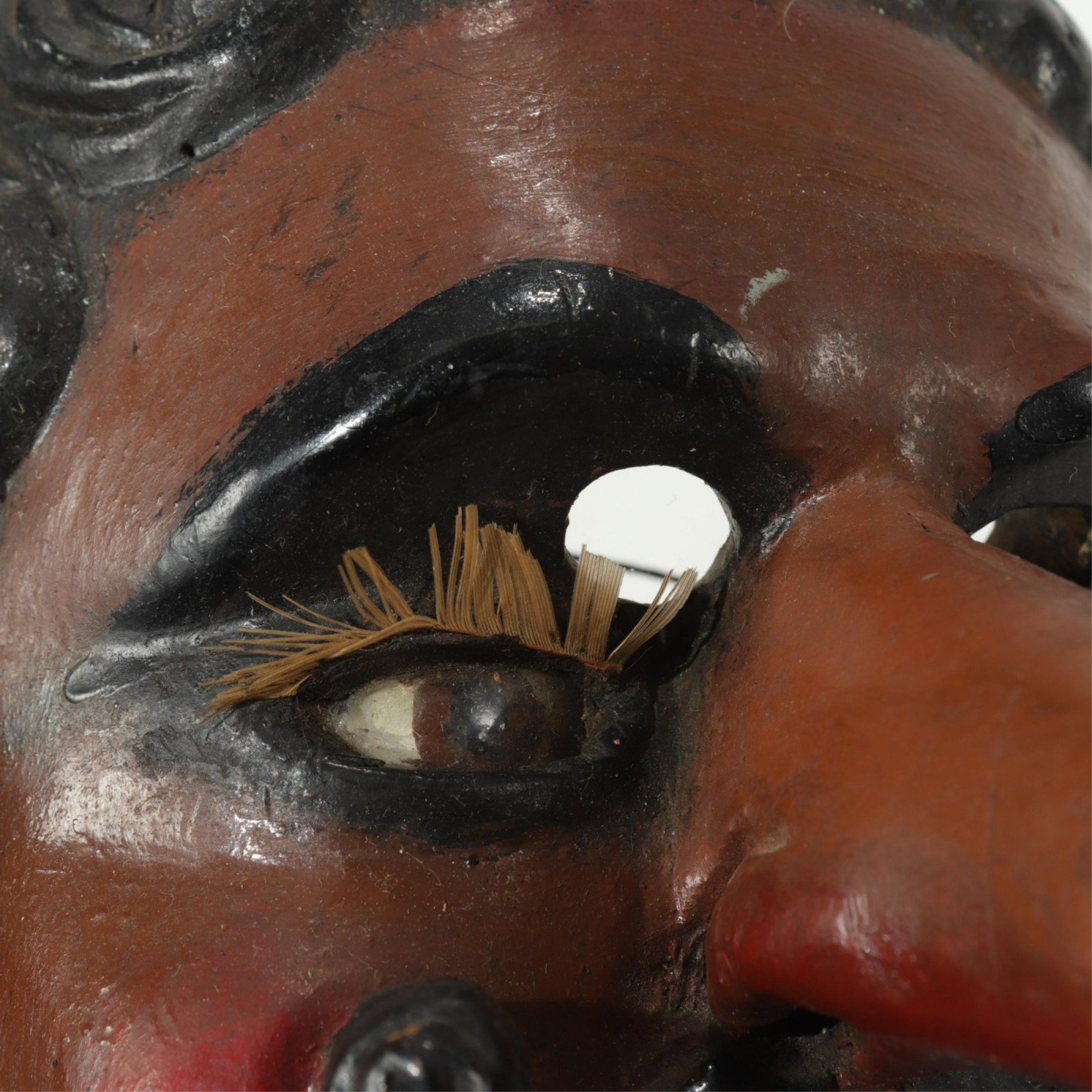Vintage Mexican Painted Wood "Cinco de Mayo" Mask, glass eyes, early 20th century
