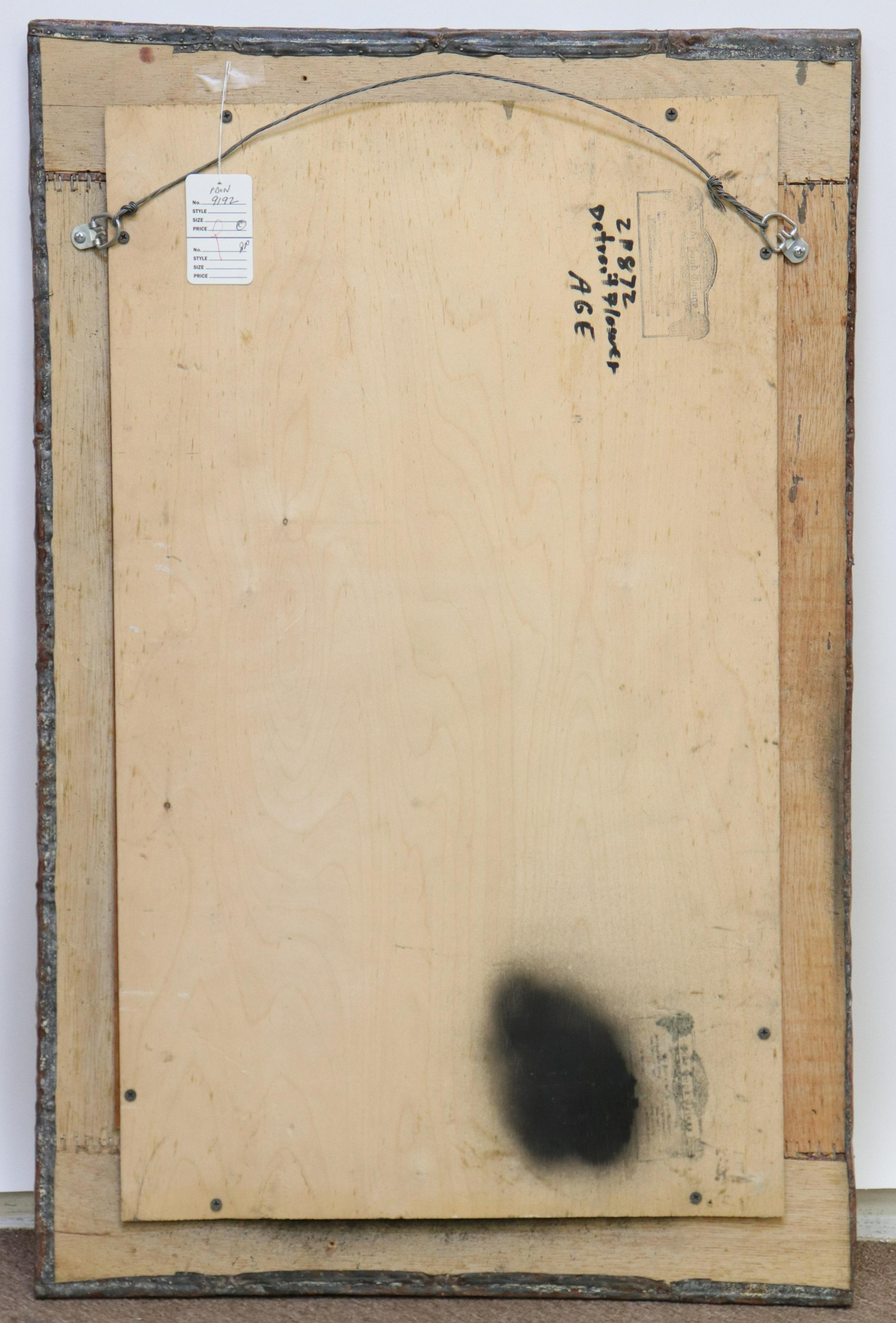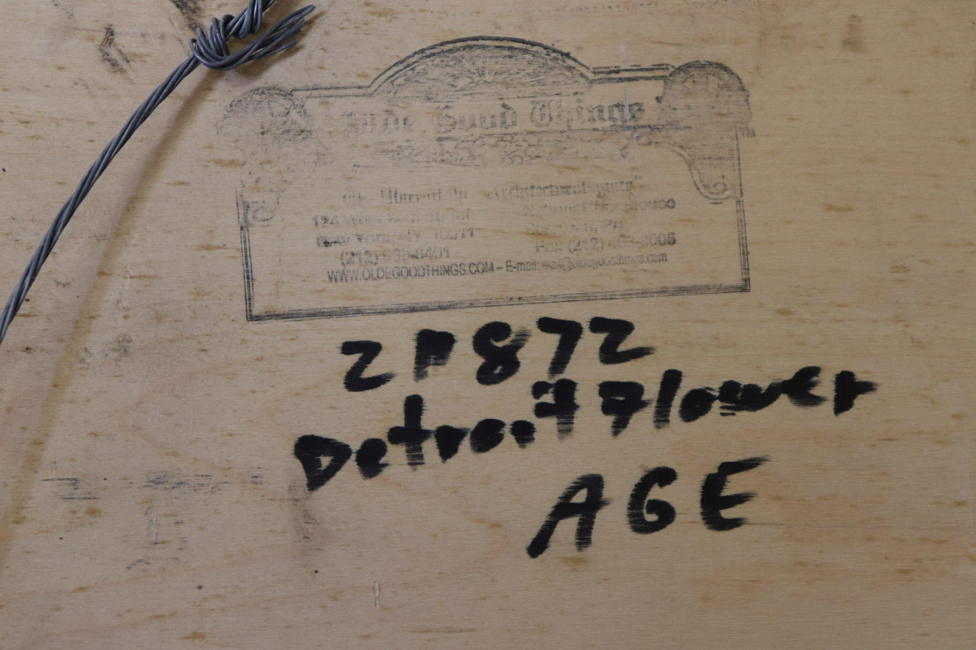 Repeated floral blocks motif. Remnants of old white paint with brownish-red varnish or glaze. Wood base frame. Dimensions: 34.5" x 22.25 Property from a Northwest CT collection (PDON9192)(JP)